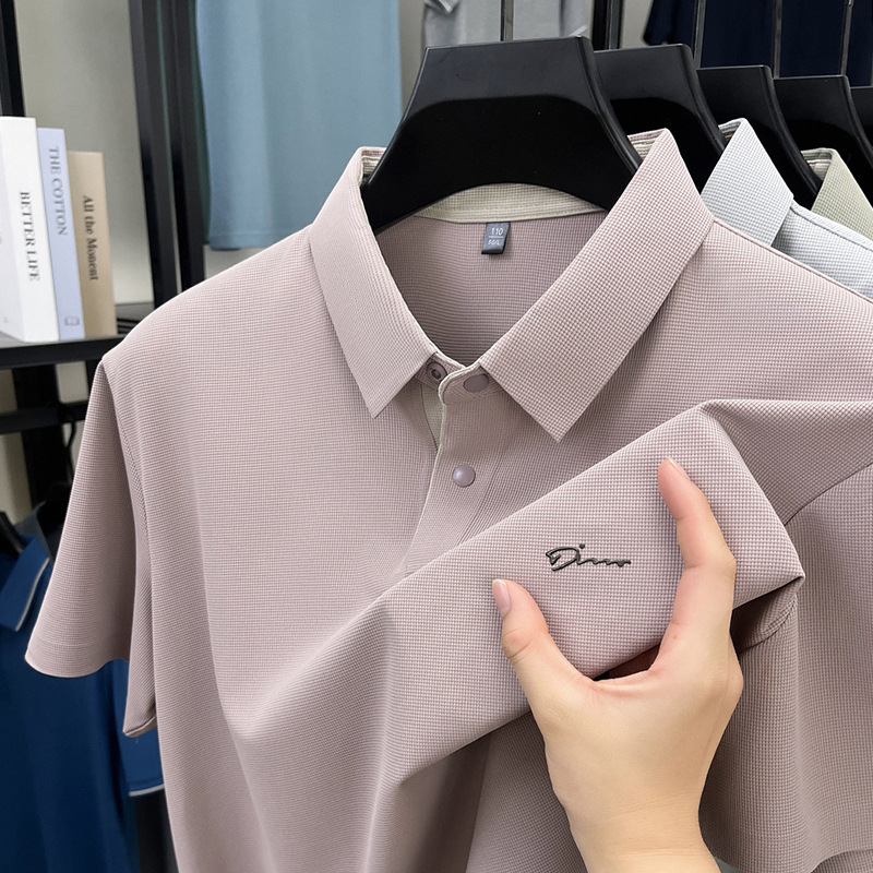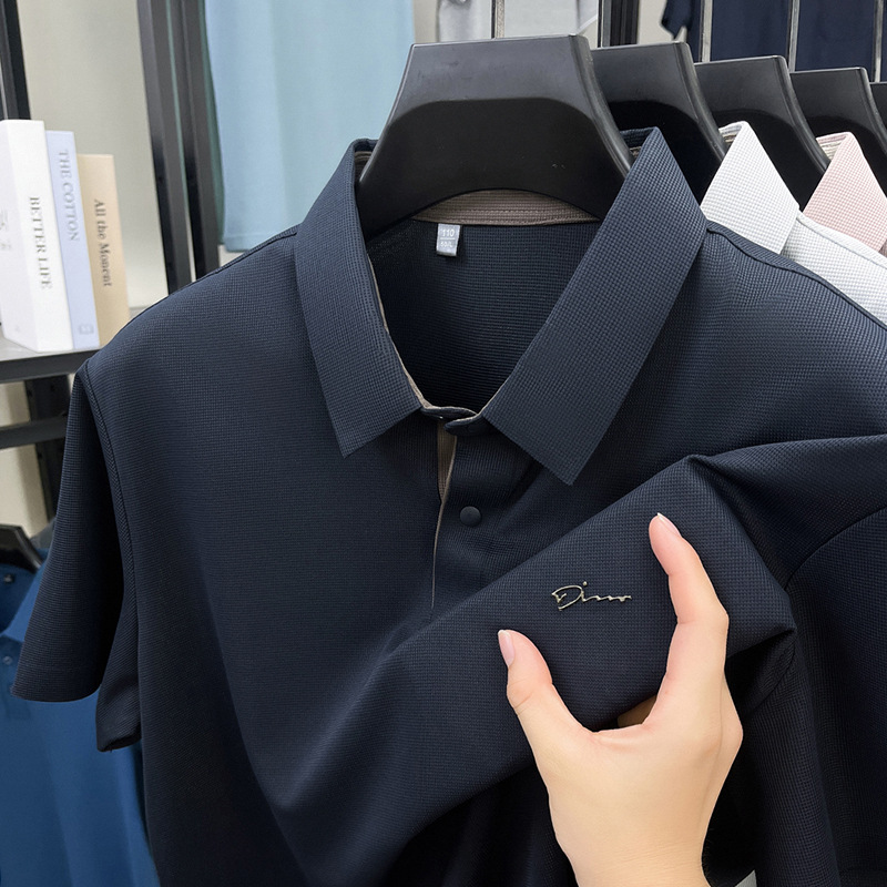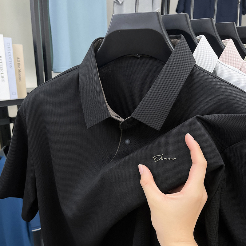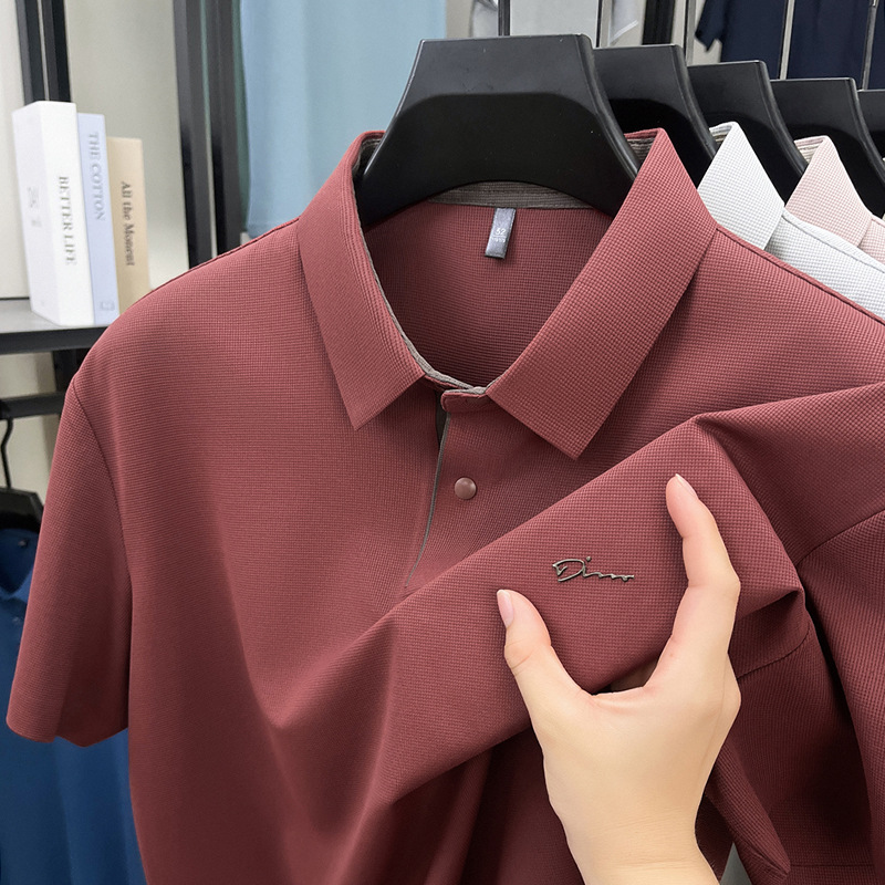 The 2025 summer new seamless short-sleeved T-shirt for men, a casual and relaxed all-seamless breathable lapel polo shirt