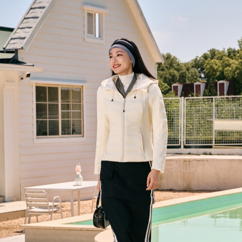 The 2025 winter new cold-proof white duck down light hooded down jacket is a warm, slimming and figure-hugging women's cotton-padded jacket