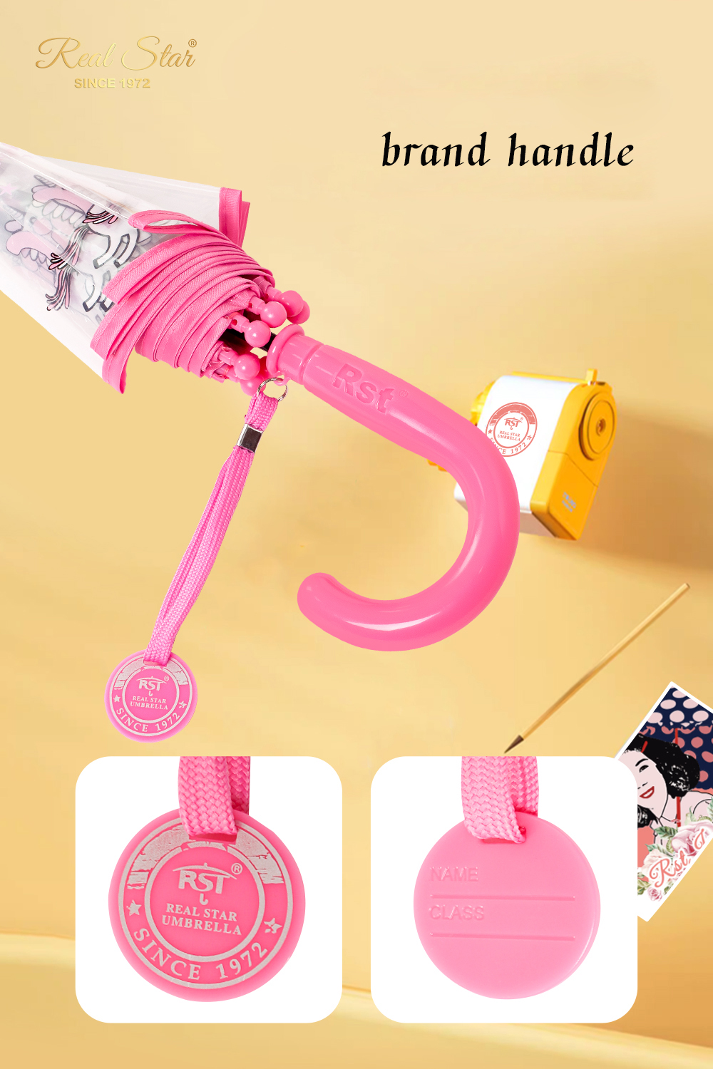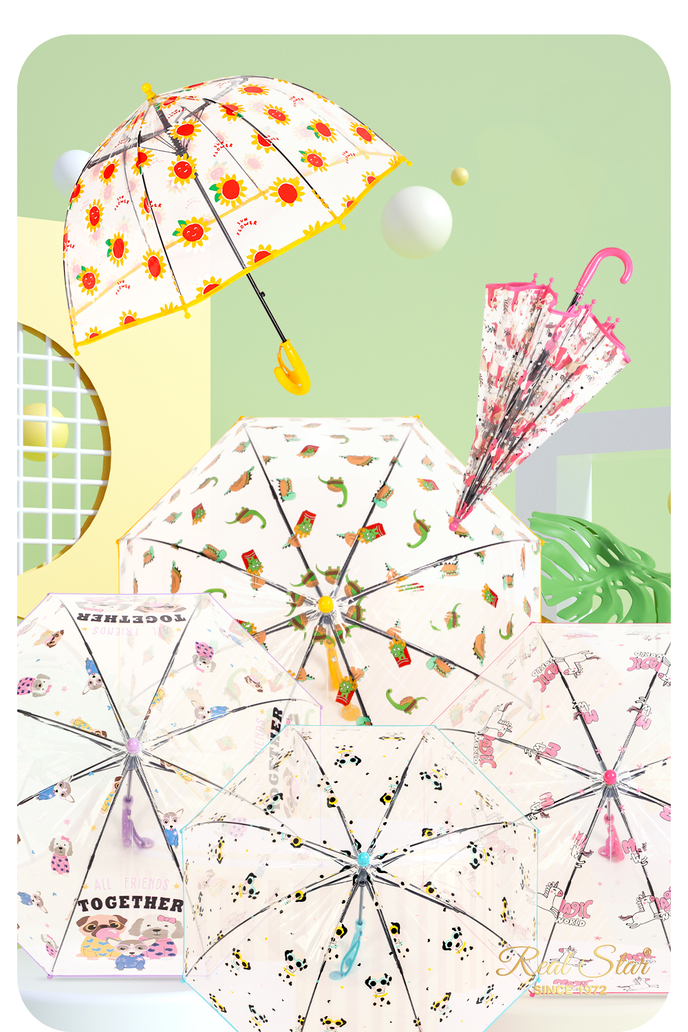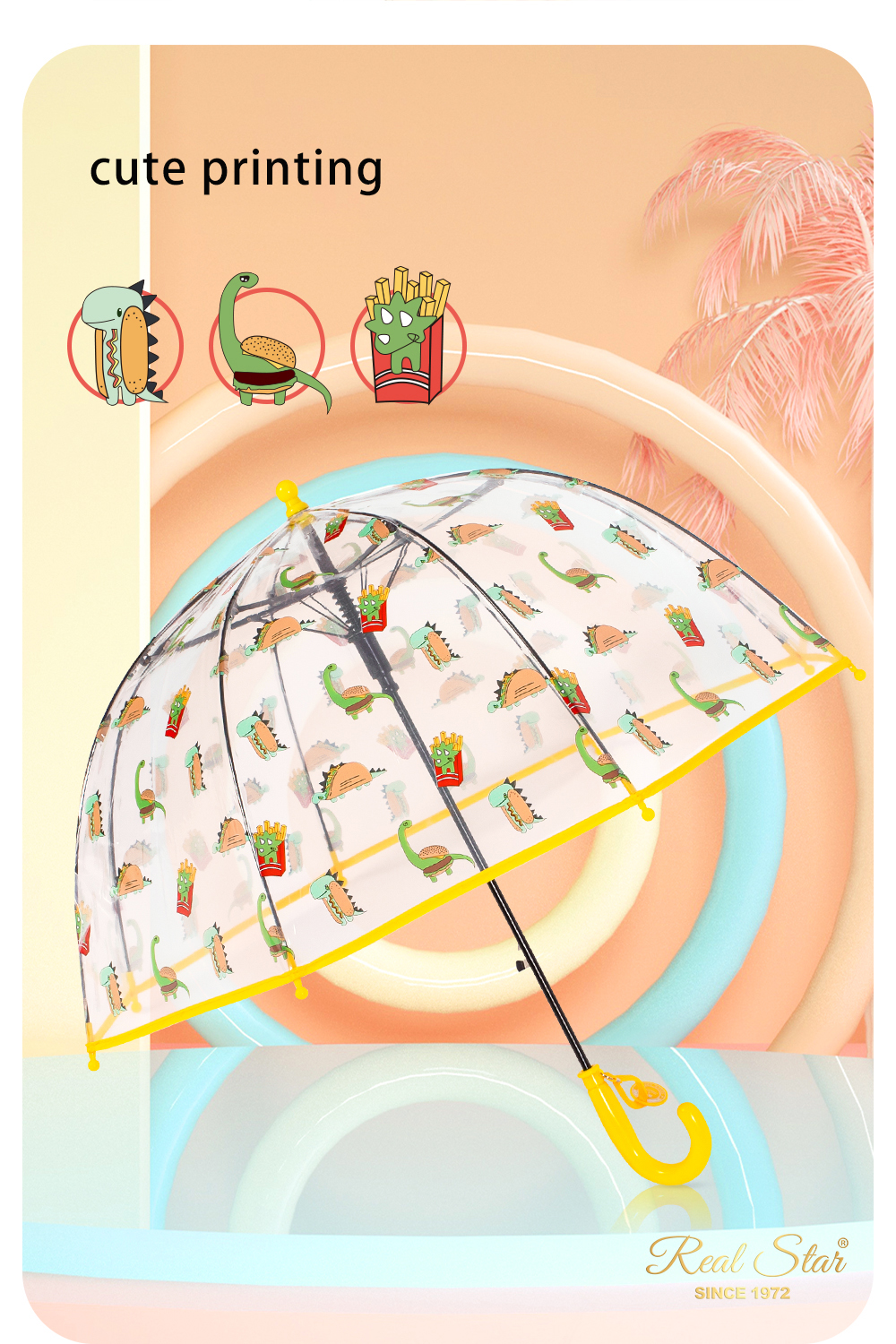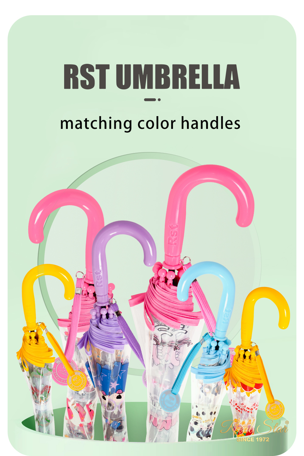 The 25-year new RST transparent plastic children's umbrella with color printed cartoon patterns, 19-inch automatic opening umbrella