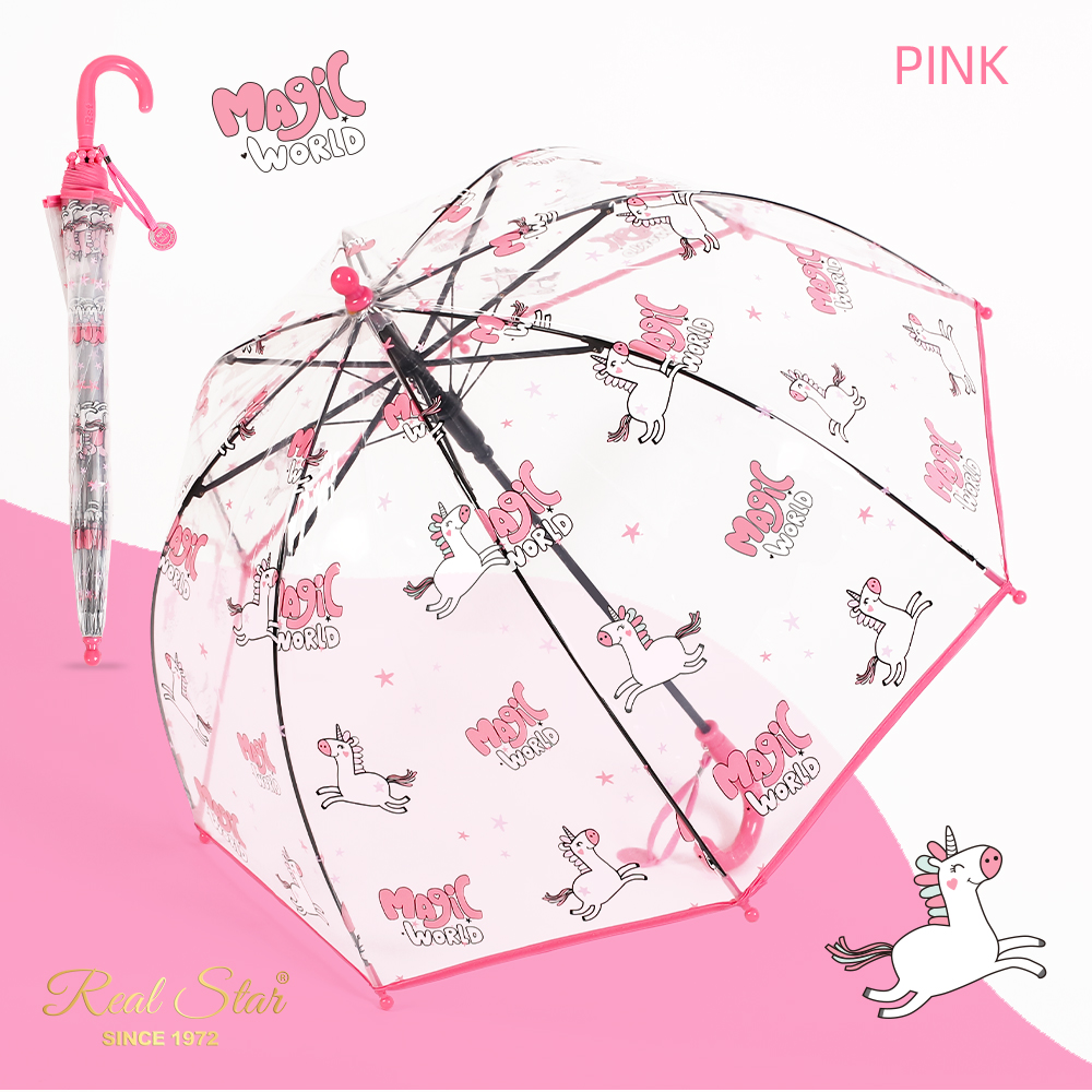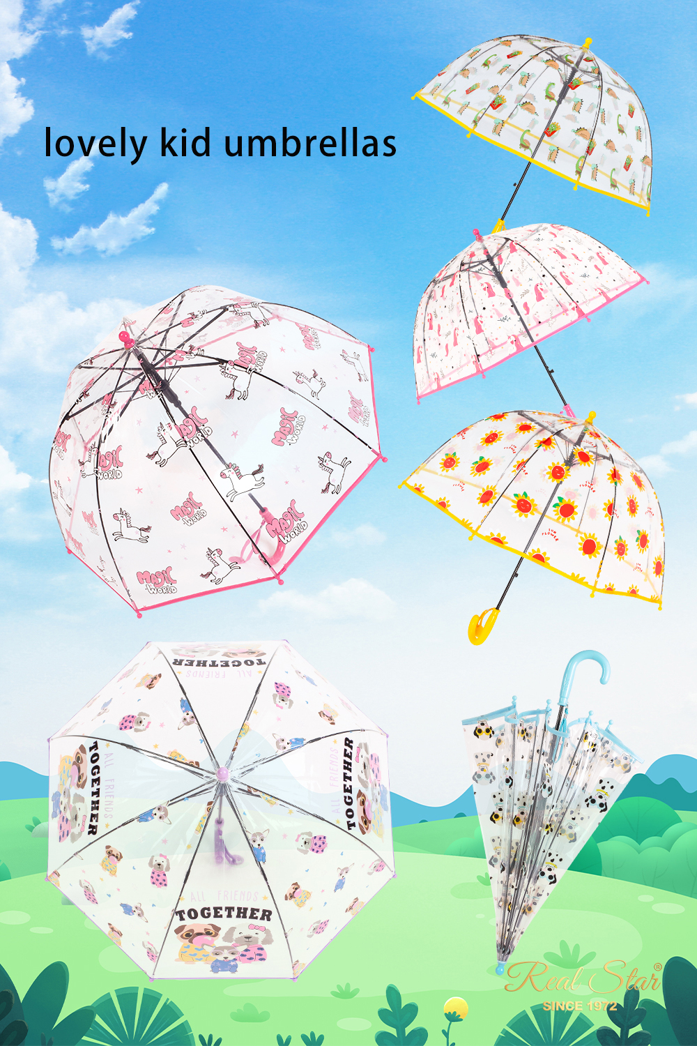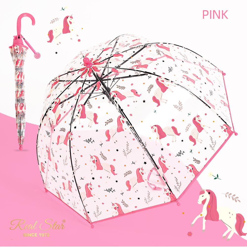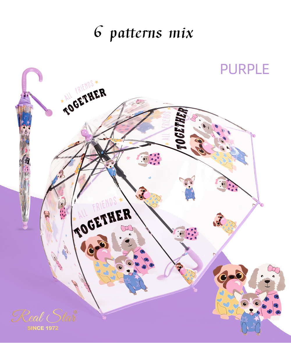 The 25-year new RST transparent plastic children's umbrella with color printed cartoon patterns, 19-inch automatic opening umbrella