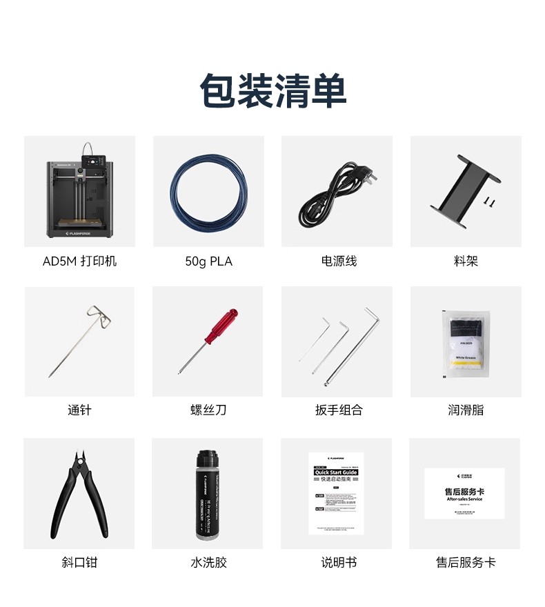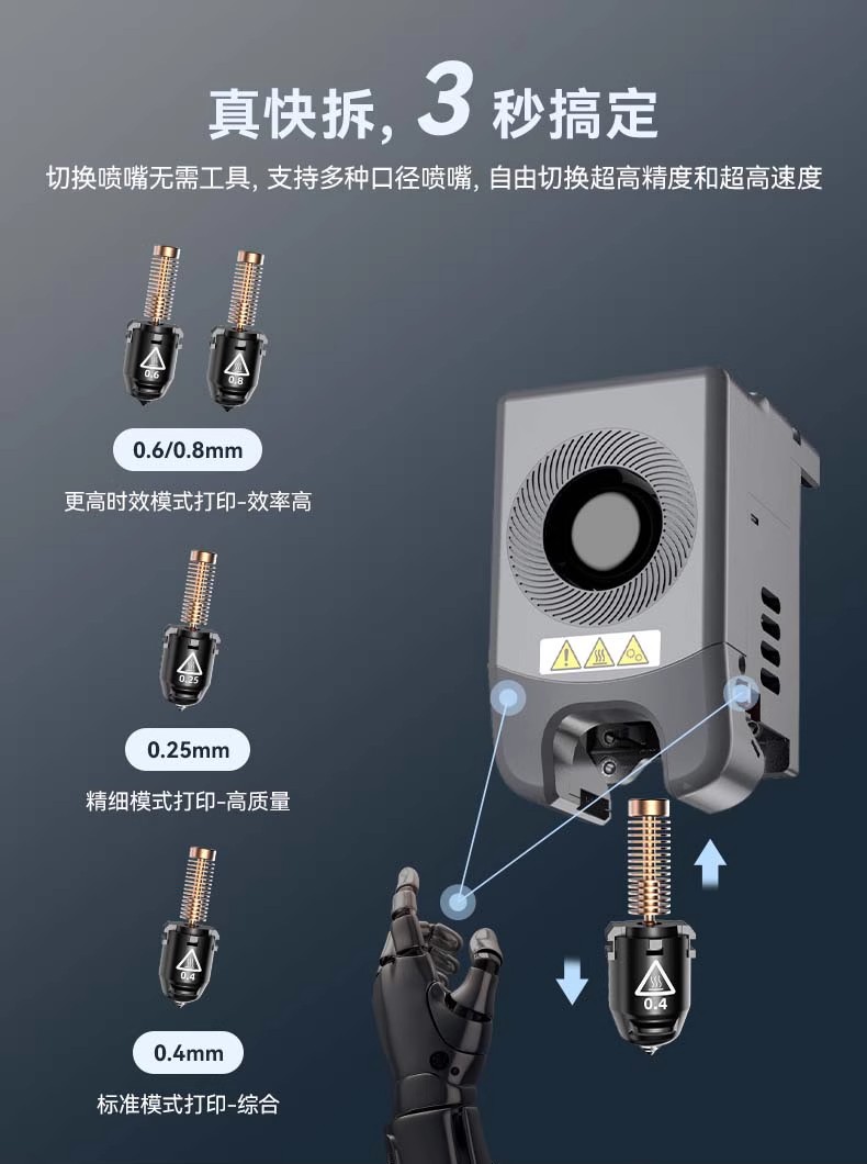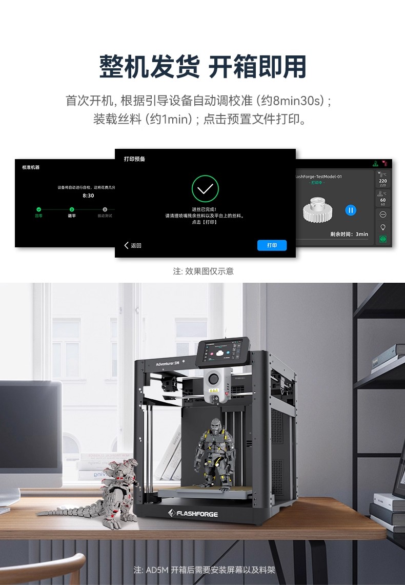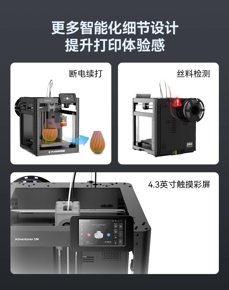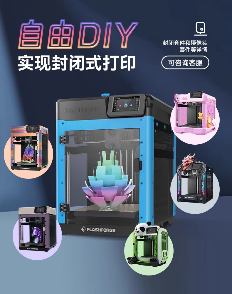 The AD5M high-speed 3D printer features fully automatic leveling, is easy to use, and has a 3-second quick-release nozzle. It is a beginner's FDM desktop home 3D printing machine