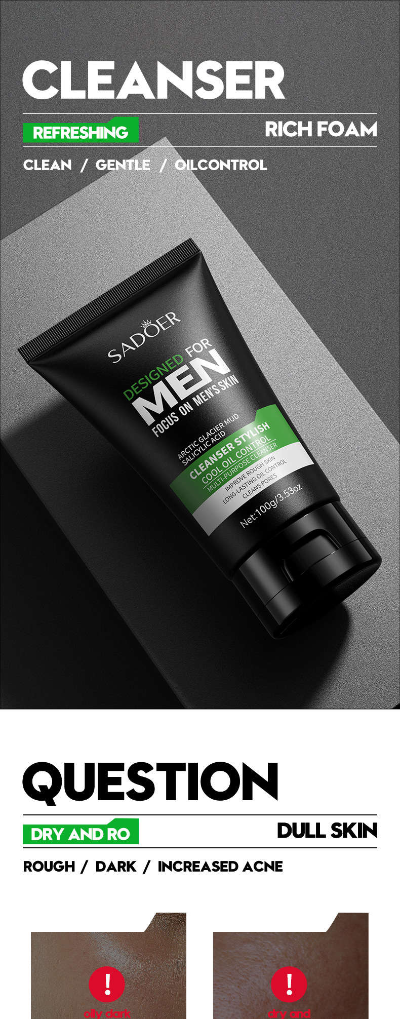 The all-English men's facial cleanser SADOER cool and stylish men's oil-control cleansing multi-effect facial cleanser cross-border export