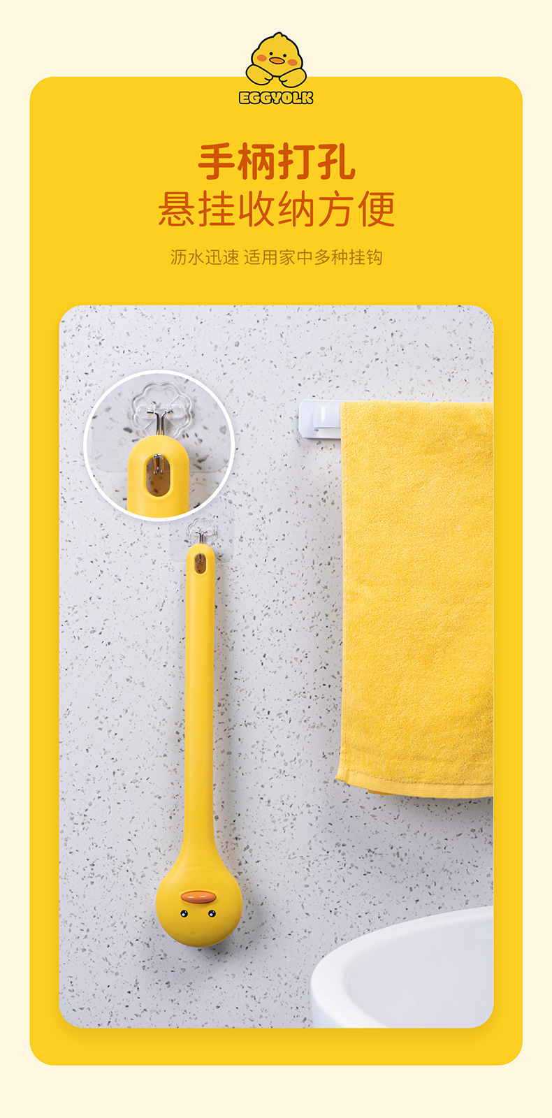 The "Amazing Bath Scrubber" - Yellow duck bath brush, with soft bristles, no marks, long handle, no need to ask for help, excellent cleaning product, the "Amazing Back Scrubber" - factory direct sales