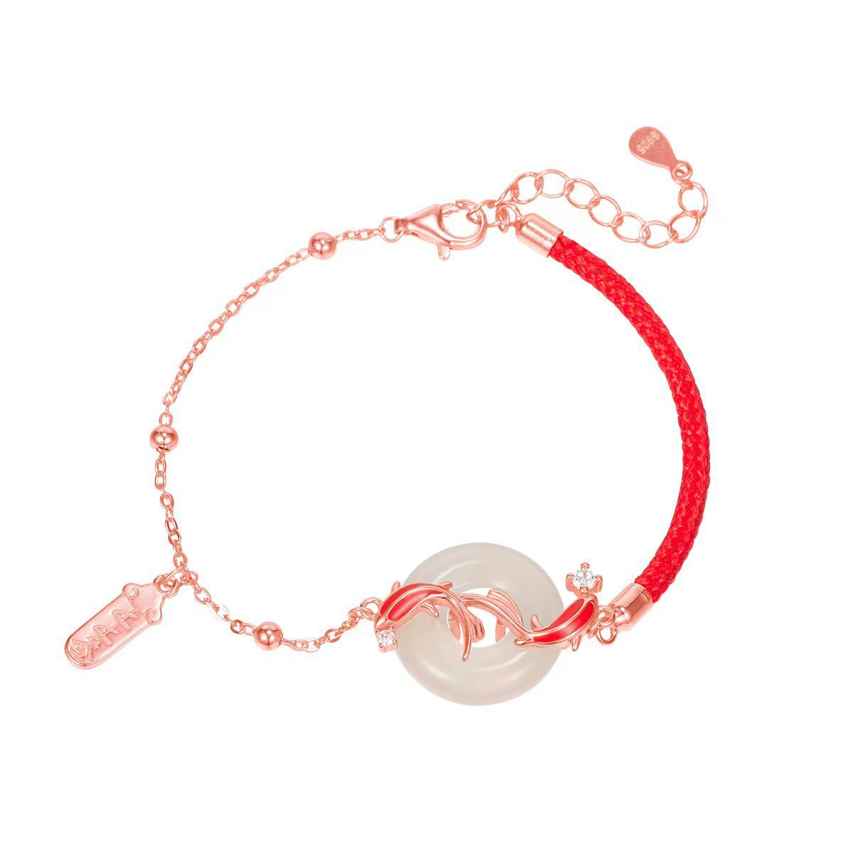 The ashore koi peace pendant with a red string and natural chalcedony is a fashionable and versatile jewelry for the zodiac year