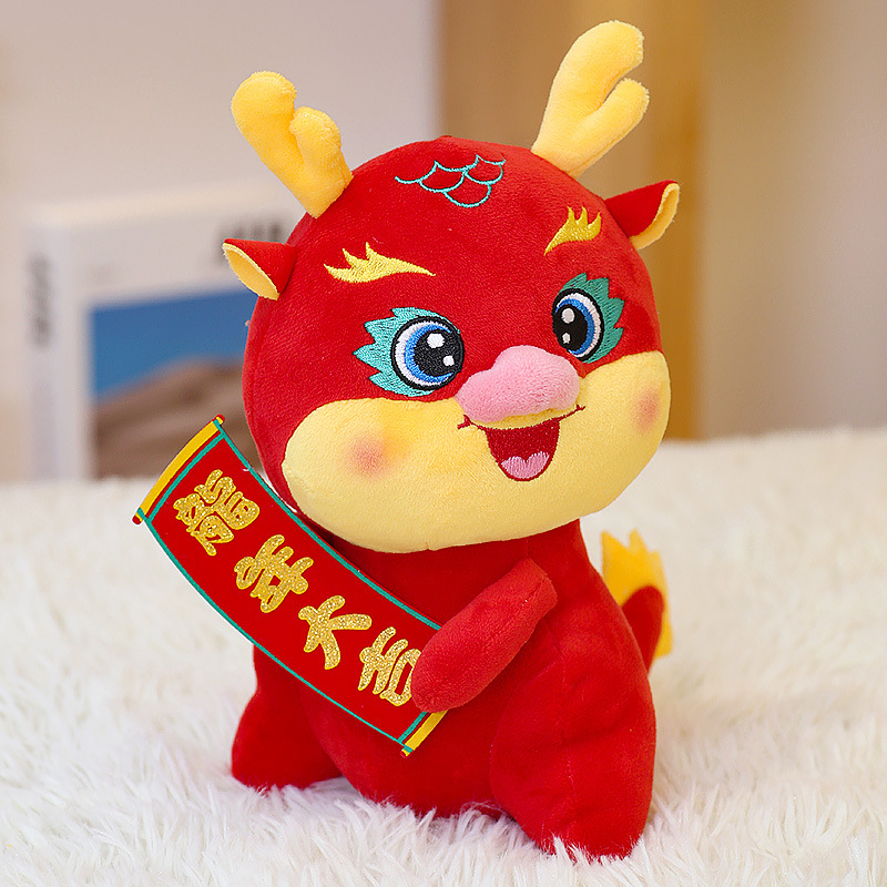 The auspicious mascot of the Year of the Dragon, the red and golden Dragon doll, a national trend toy, a gift for the annual meeting, the Dragon baby, a doll of the twelve Chinese zodiac signs