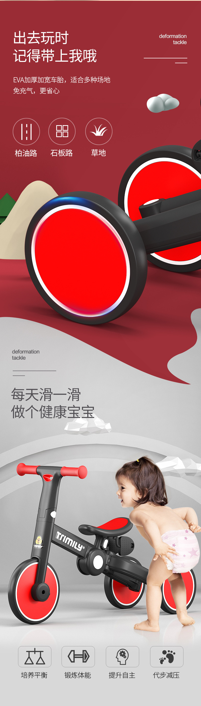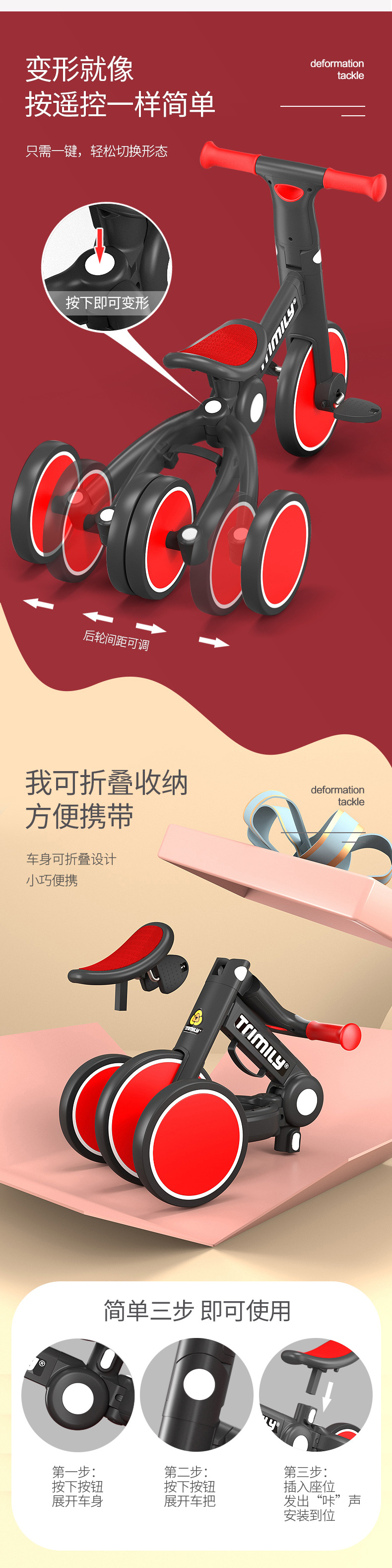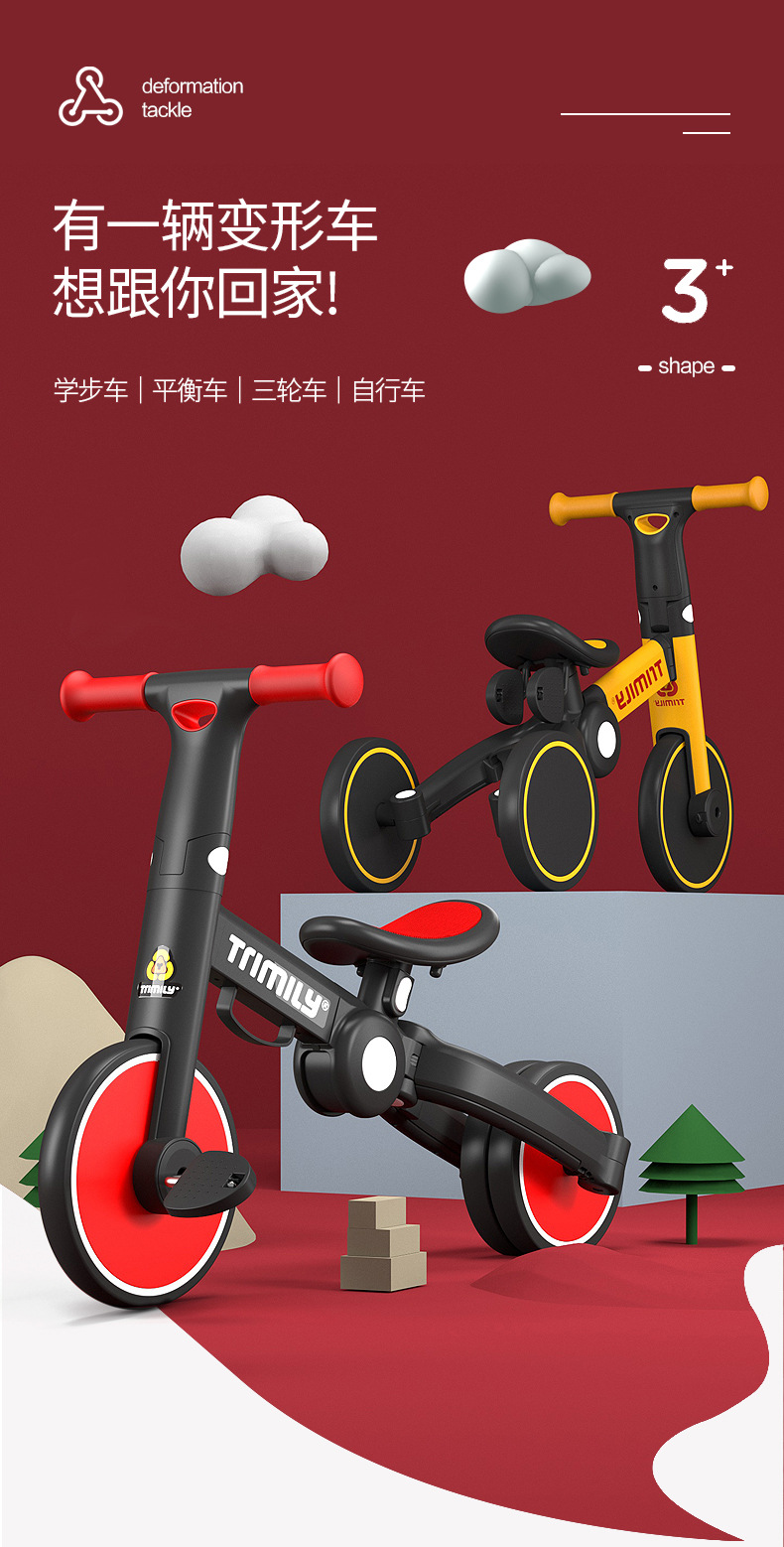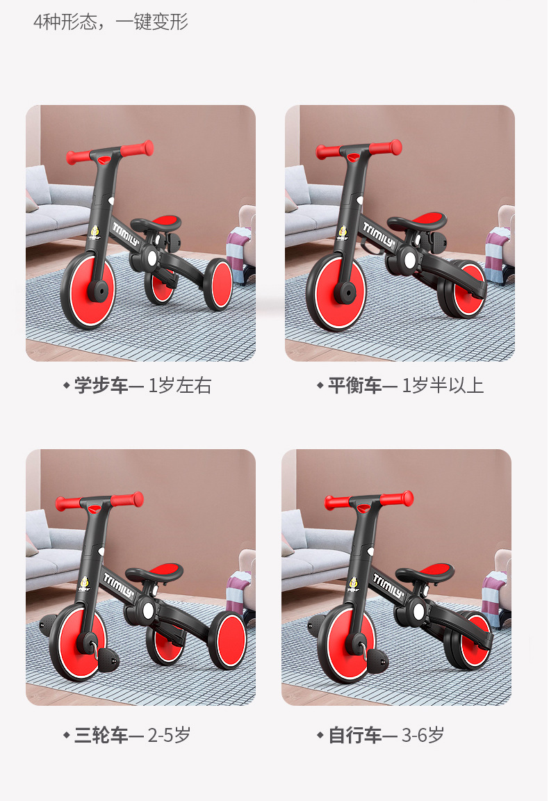 The baby children 's tricycle at home 1-3-6 years old, three-in-one, four-in-one, multi-functional folding, deformation, balance and sliding step