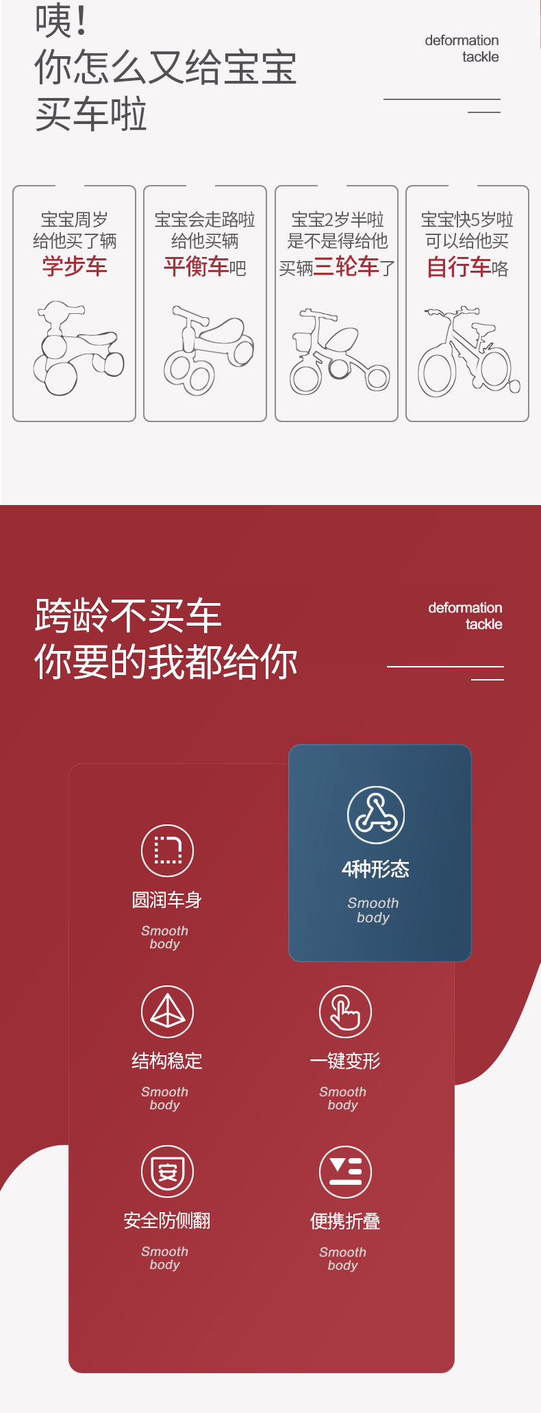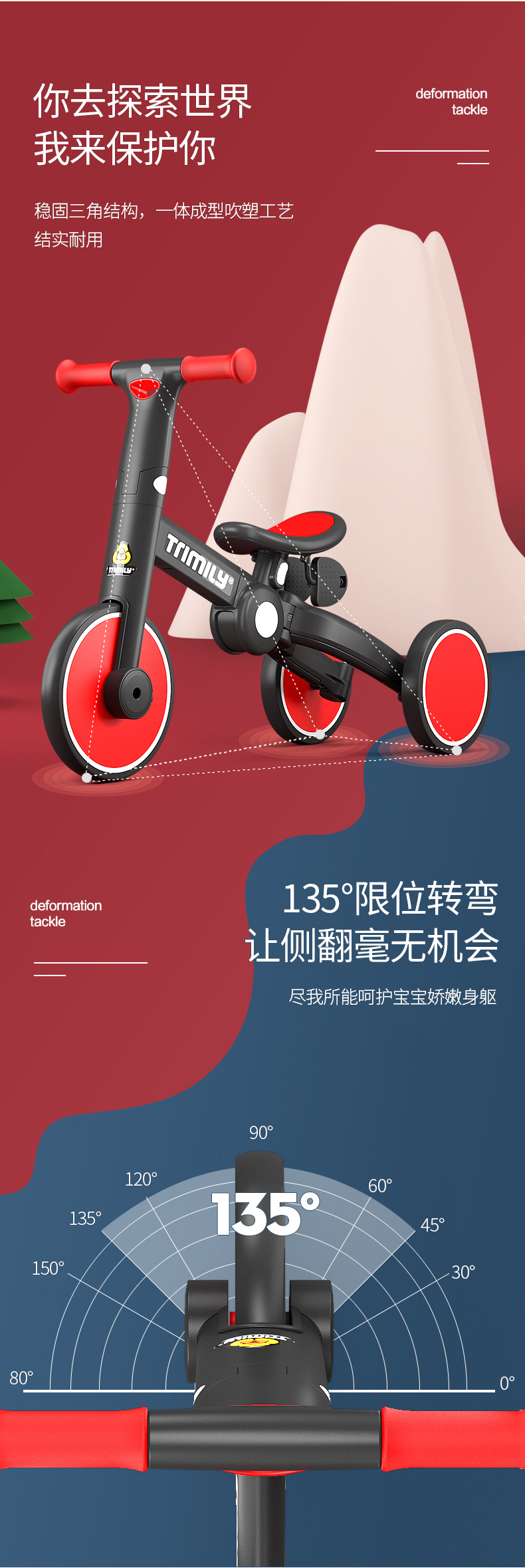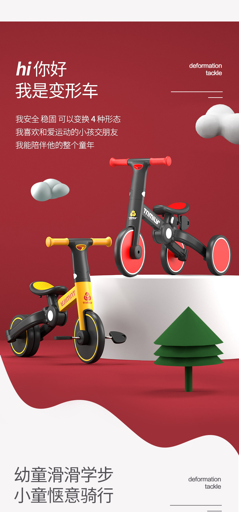 The baby children 's tricycle at home 1-3-6 years old, three-in-one, four-in-one, multi-functional folding, deformation, balance and sliding step