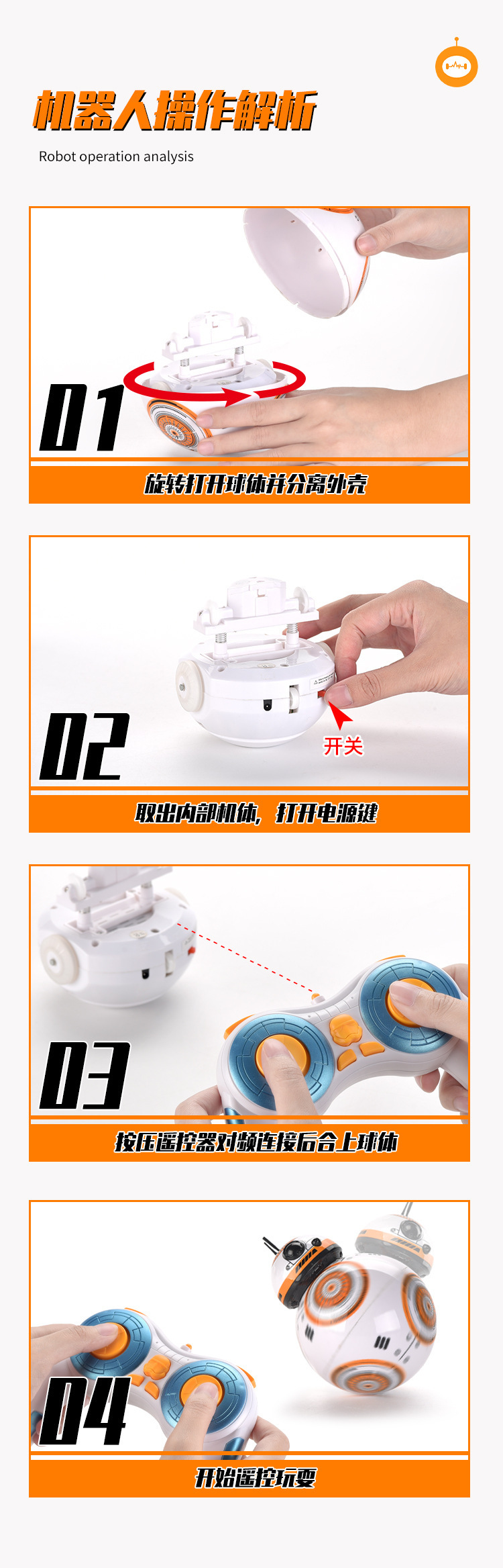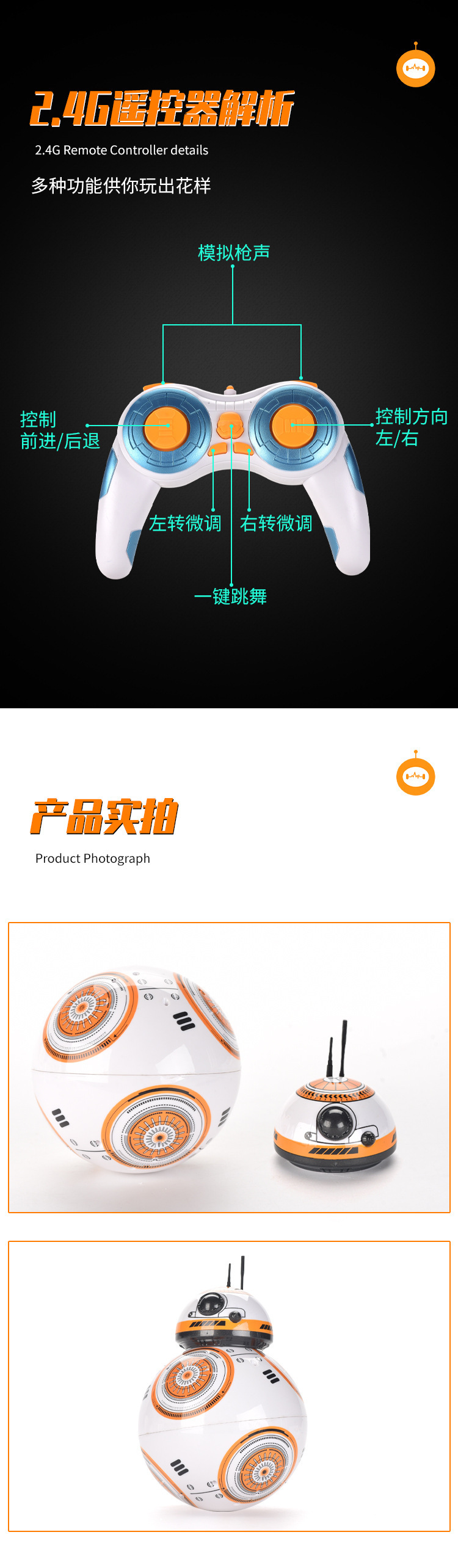 The children's toy manufacturer Planet BB8 Battle: The Original Force intelligent remote control robot toy is dancing, rotating and with lights