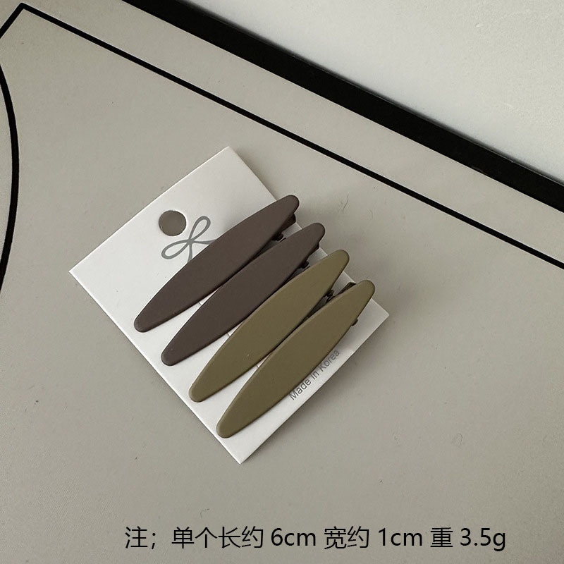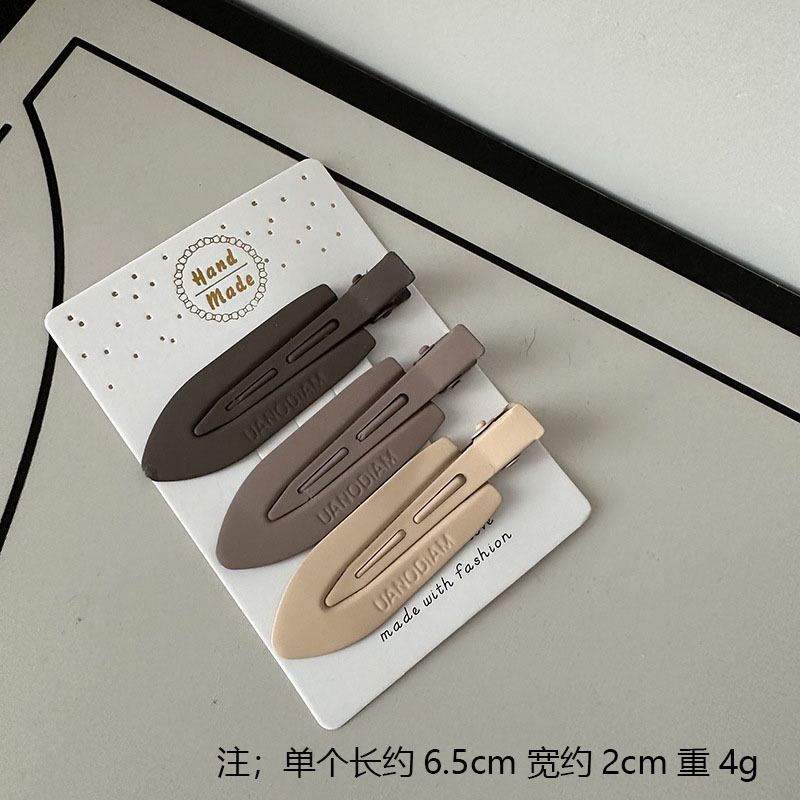 The coffee-colored hair clip set exudes a retro charm. The bangs clip and the duckbill clip, along with the high-quality hair accessory, give a sense of feminine sophistication