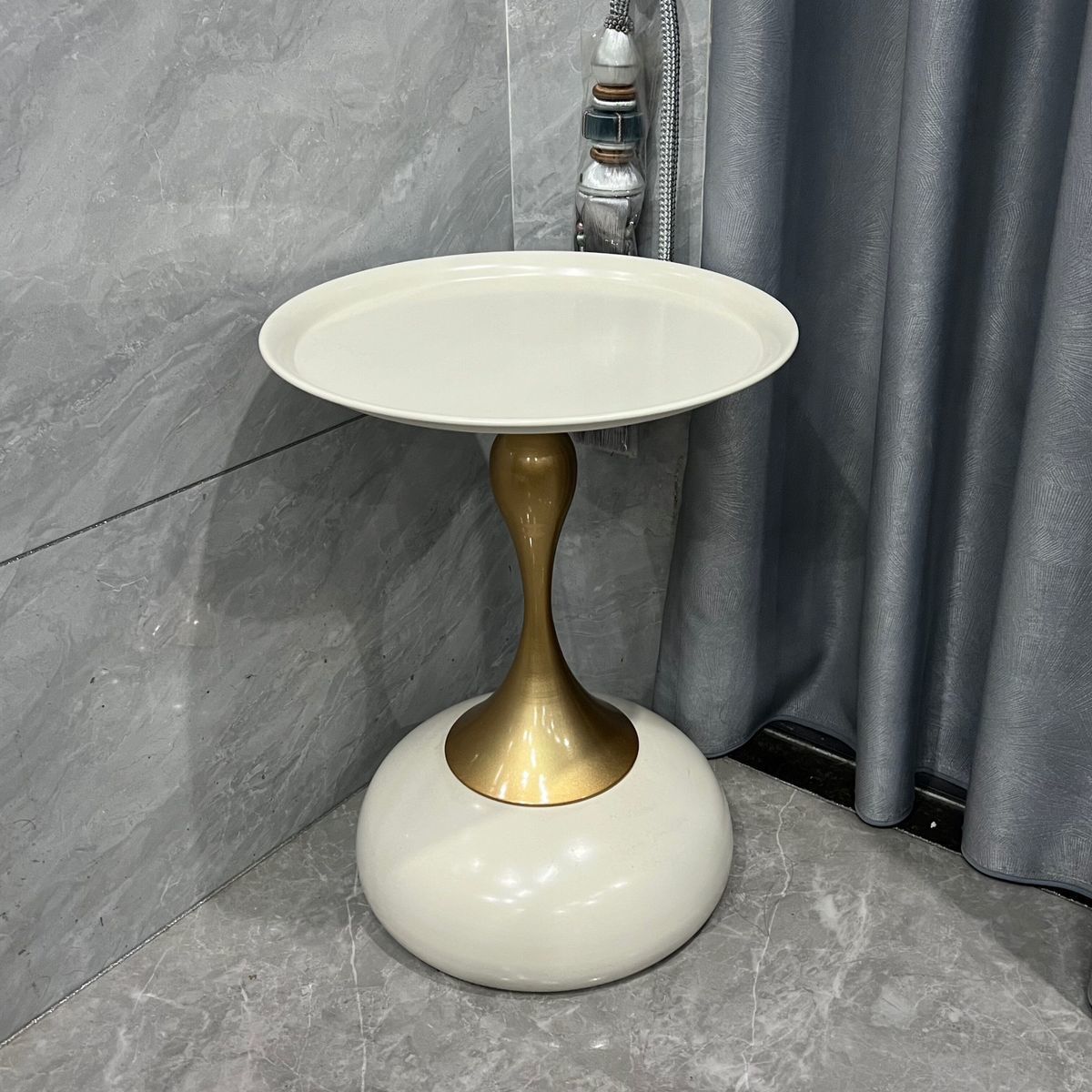 The coffee table, beside the sofa, a small, stylish Italian light luxury modern round table, a movable corner table, and a convenient bedside table
