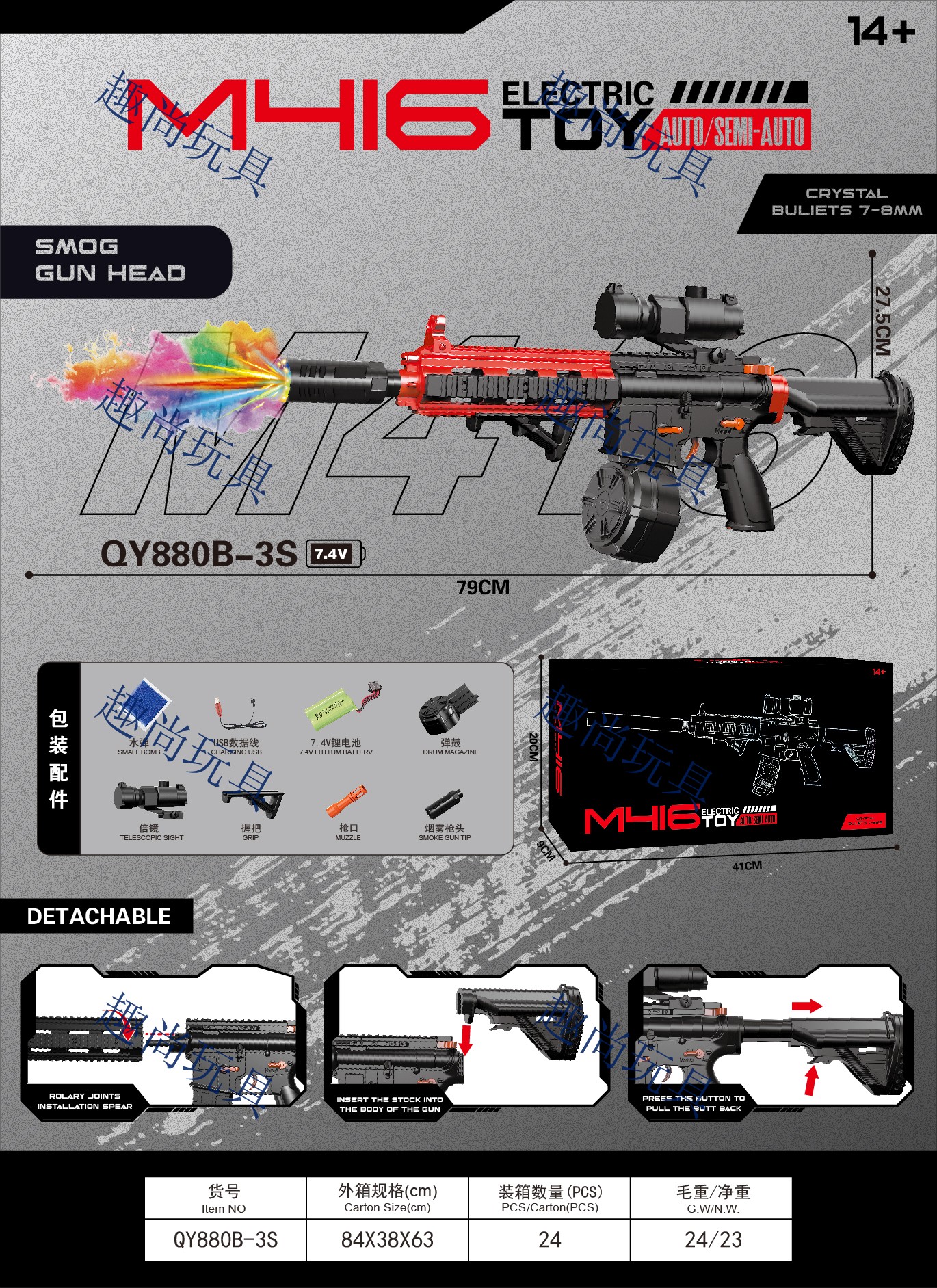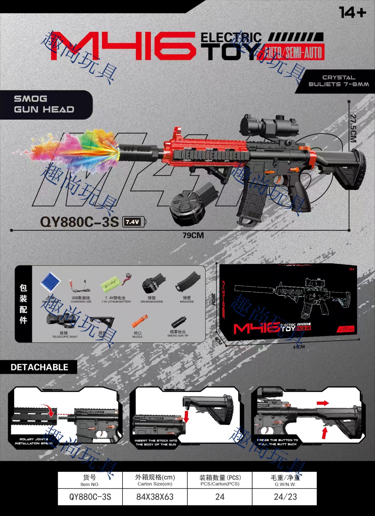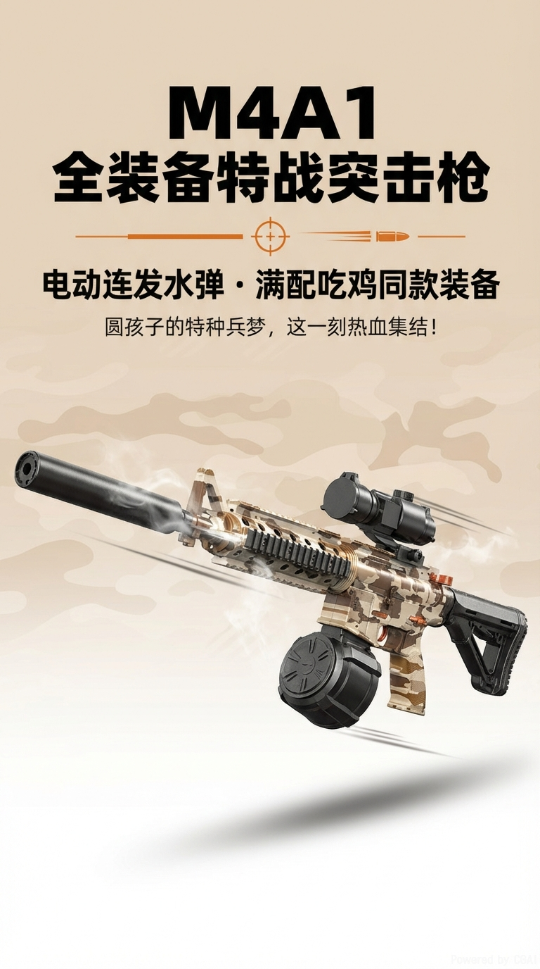 The colorful smoke mute toy gun M416 electric water jet gun submachine gun is a children's toy gun suitable for boys and girls for entertainment and leisure