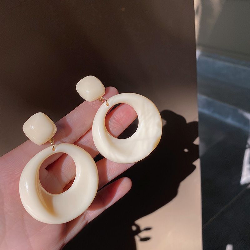 The colors of autumn ~ Retro Showa oil painting, court-style French large ring, exaggerated modern acrylic earrings and earrings
