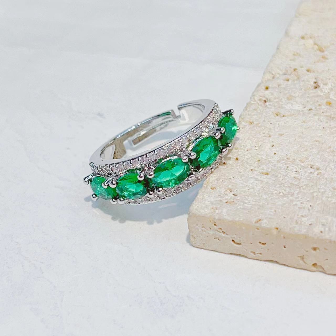 The cross-border Douyin website from Europe and America features a luxurious and personalized open-top female finger made of copper plated with real gold, rose red emerald and egg-shaped zircon