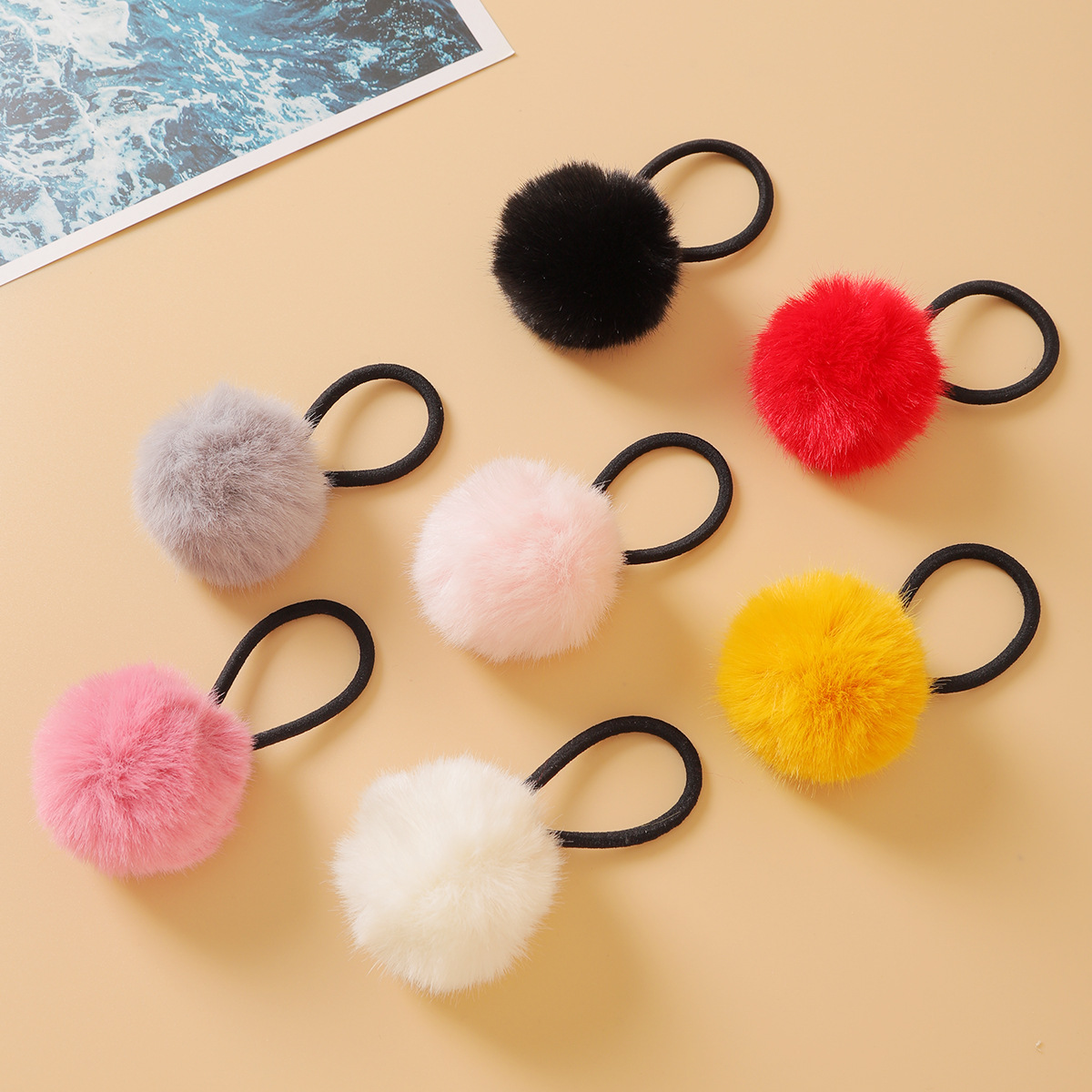 The cute and colorful plush hair tie for autumn and winter is super soft. The fluffy pom-pom hair band won't hurt the hair. Girls tie their hair with leather bands