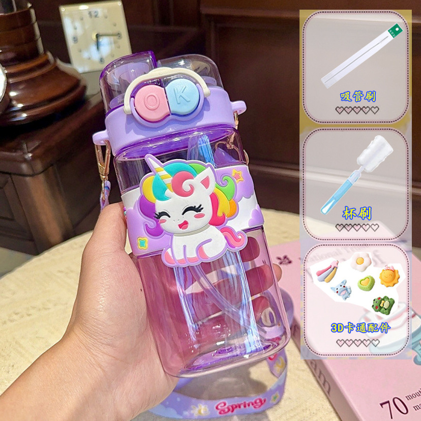Q-cute Double Drinking Cup - Purple + Straw Brush + Cup Brush +3D Cartoon Accessories