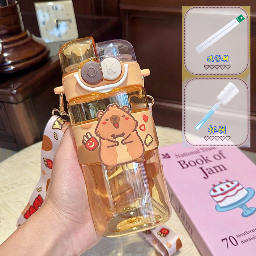 Q Cute Double Drinking Cup - Coffee color + Straw Brush + Cup Brush +3D Cartoon accessories