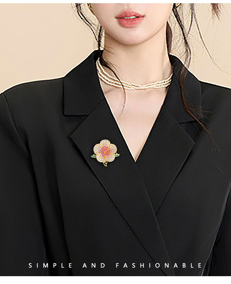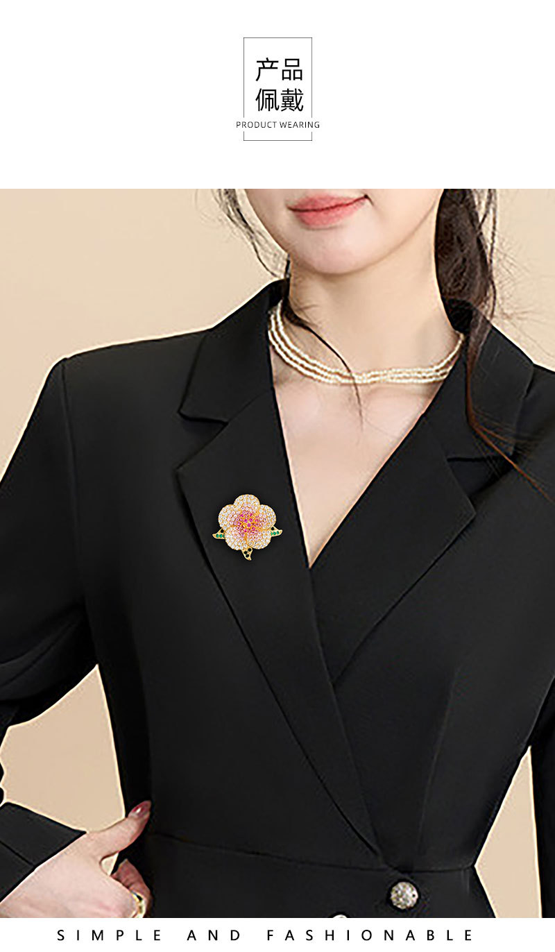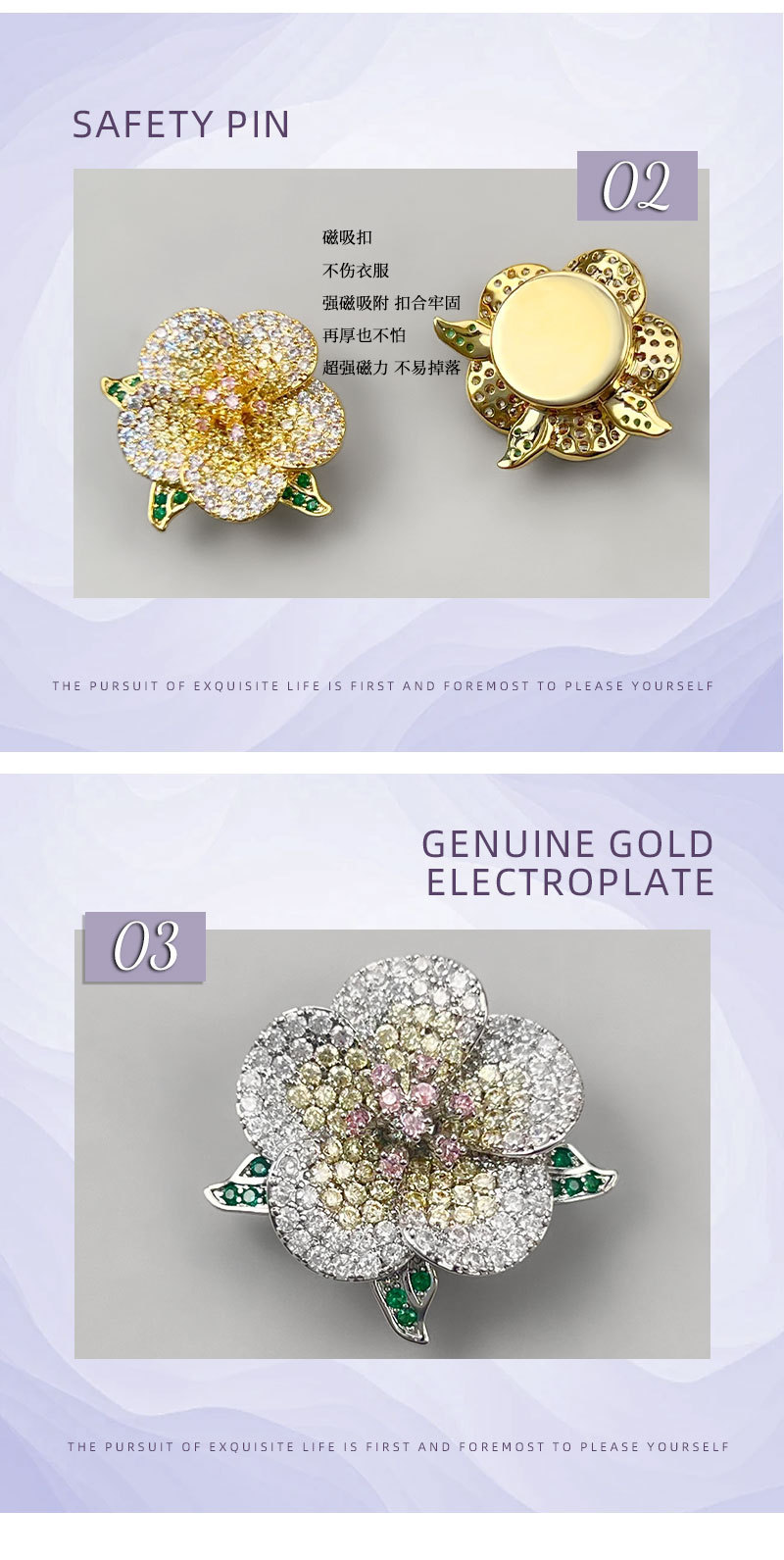 The delicate camellia magnetic clasp does not damage the clothes. It is fashionable and elegant, slightly studded with zirconium brooches and a small chanel-style three-dimensional women's brooch