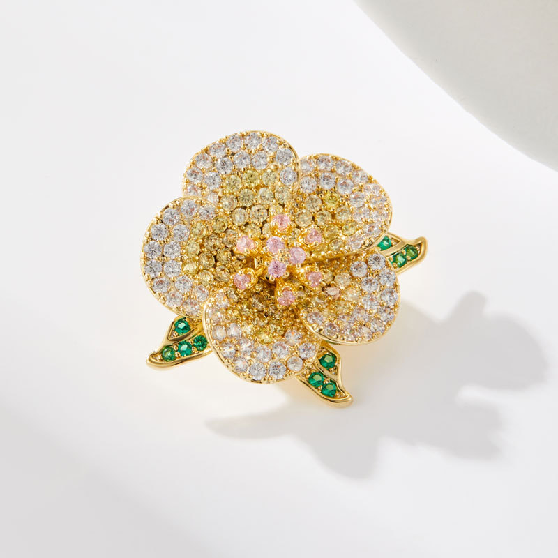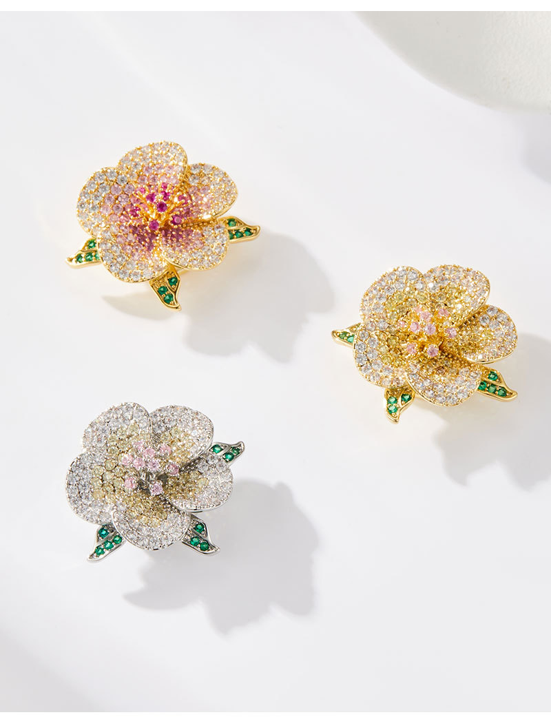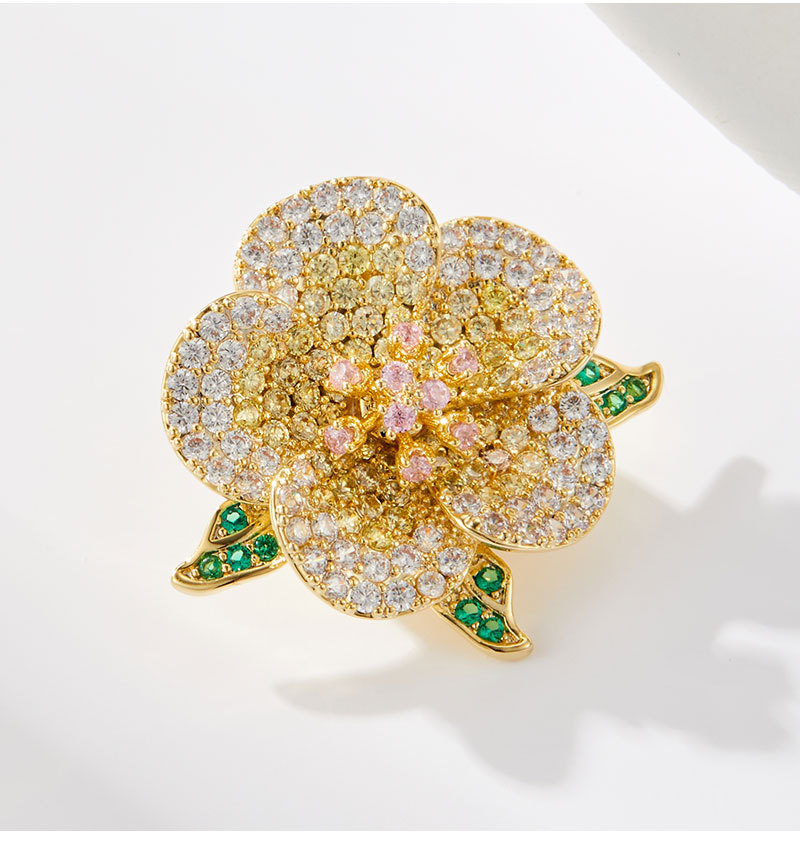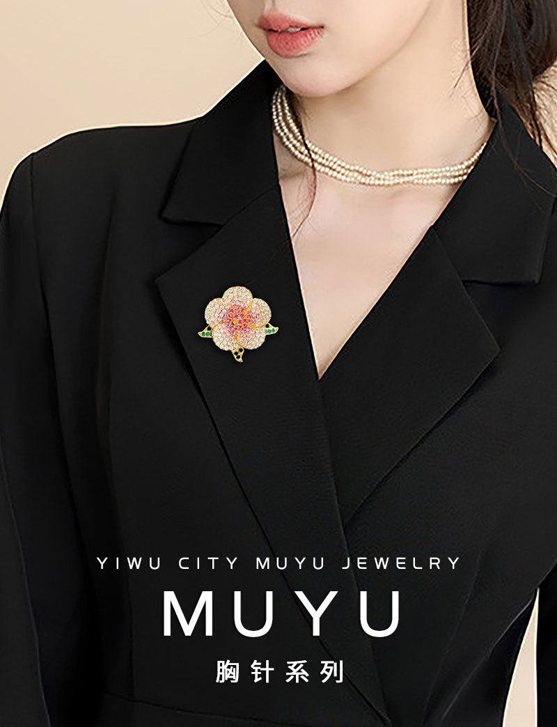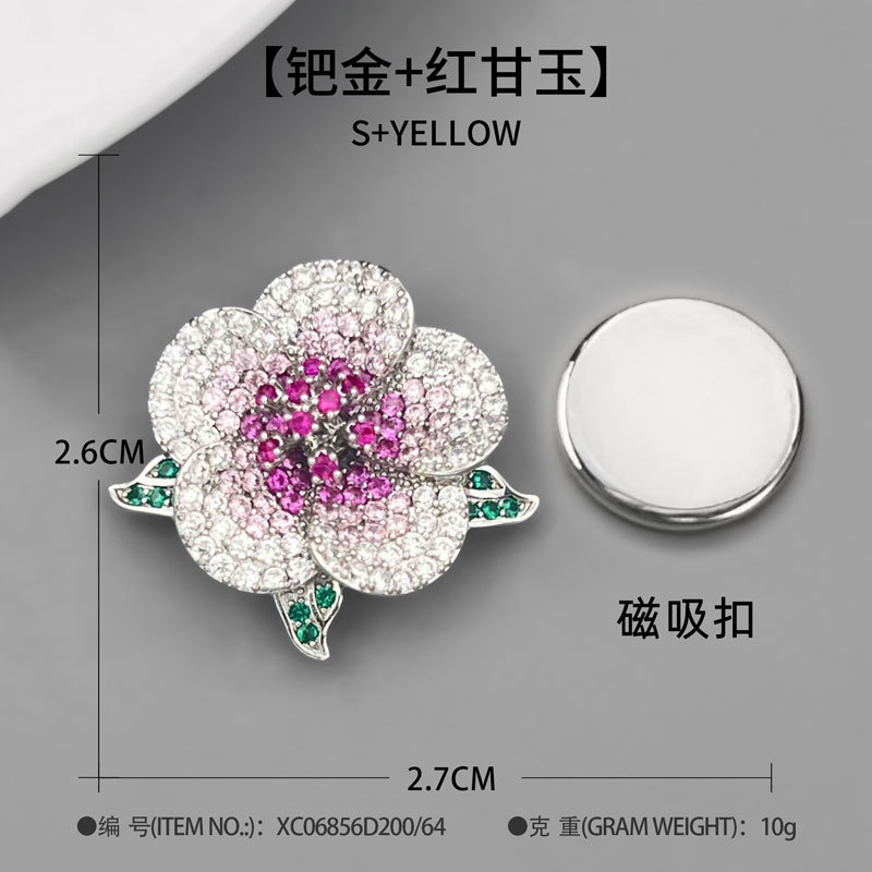 The delicate camellia magnetic clasp does not damage the clothes. It is fashionable and elegant, slightly studded with zirconium brooches and a small chanel-style three-dimensional women's brooch