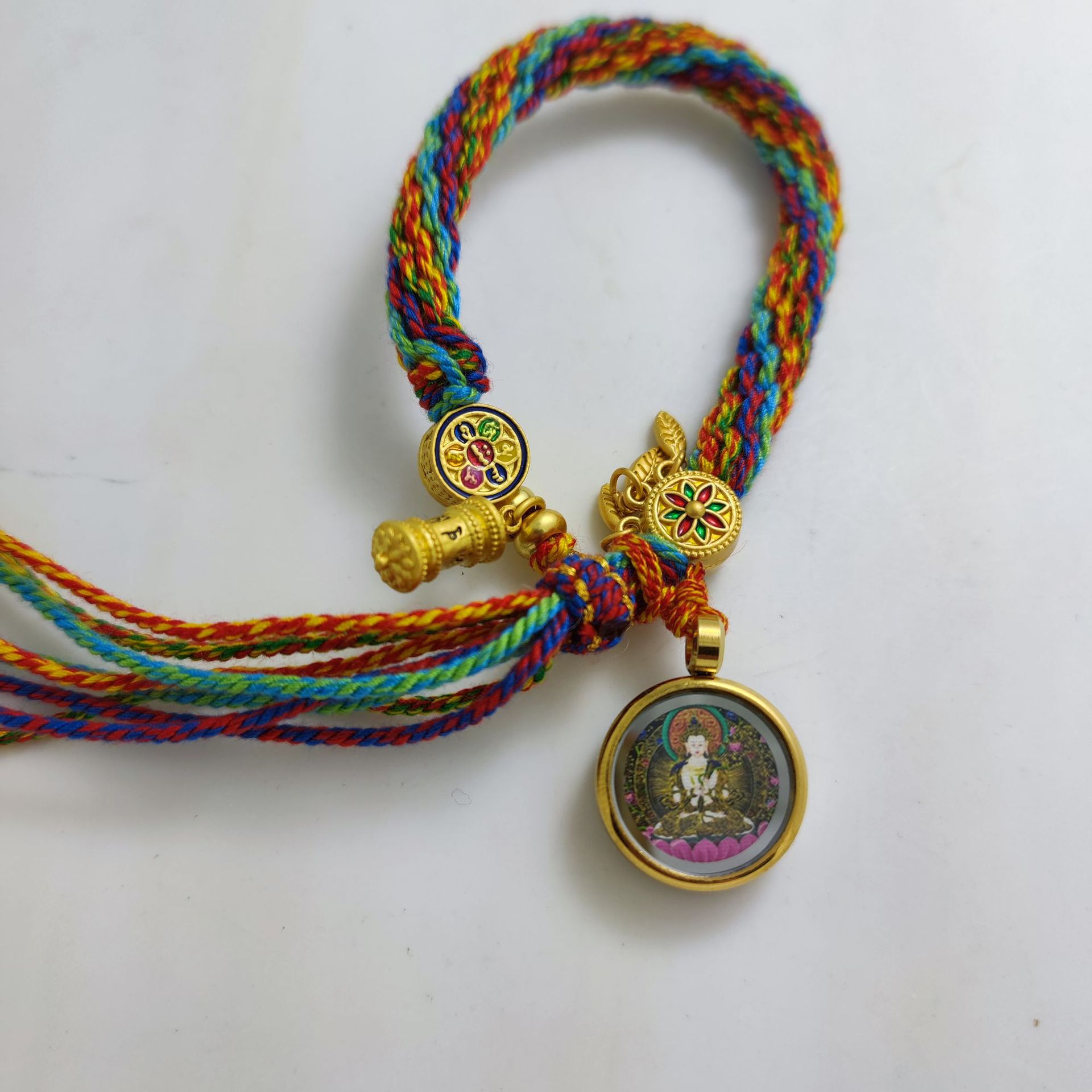 The Eight Guardian Gods Thangka bracelet is a round titanium steel hand-woven rope with adjustable length. It is a Tibetan-style decorative bracelet