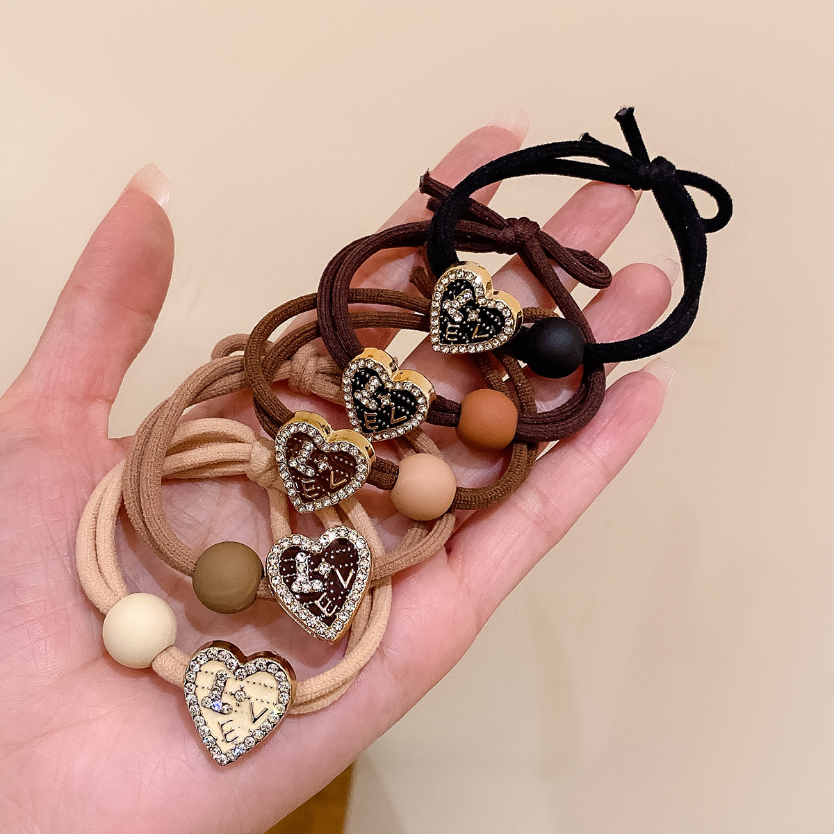 The fresh and cute heart-shaped hair band, the coffee-colored LOVE hair tie, and the adorable girl's ponytail hair tie are highly elastic and won't damage the hair's elastic bands