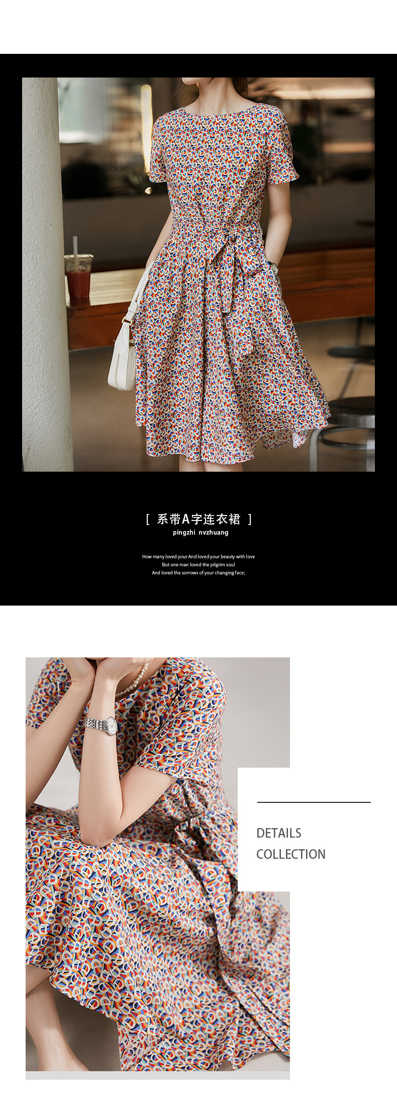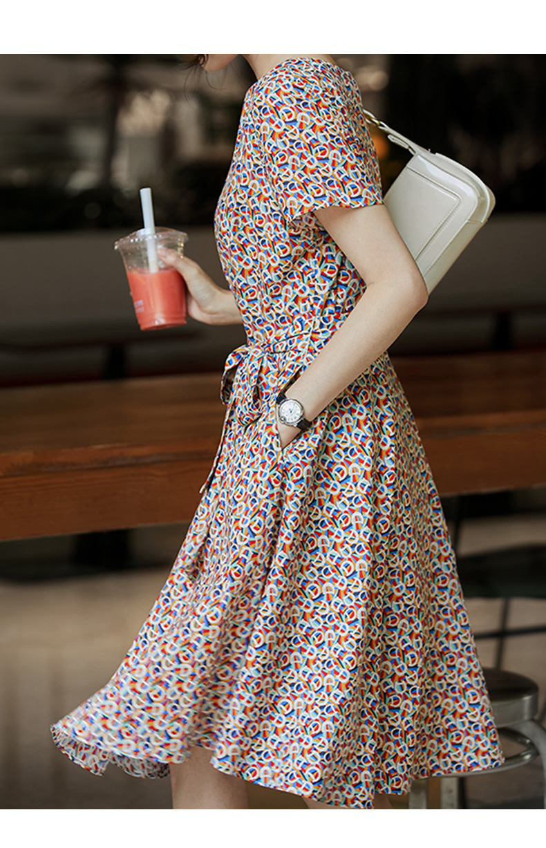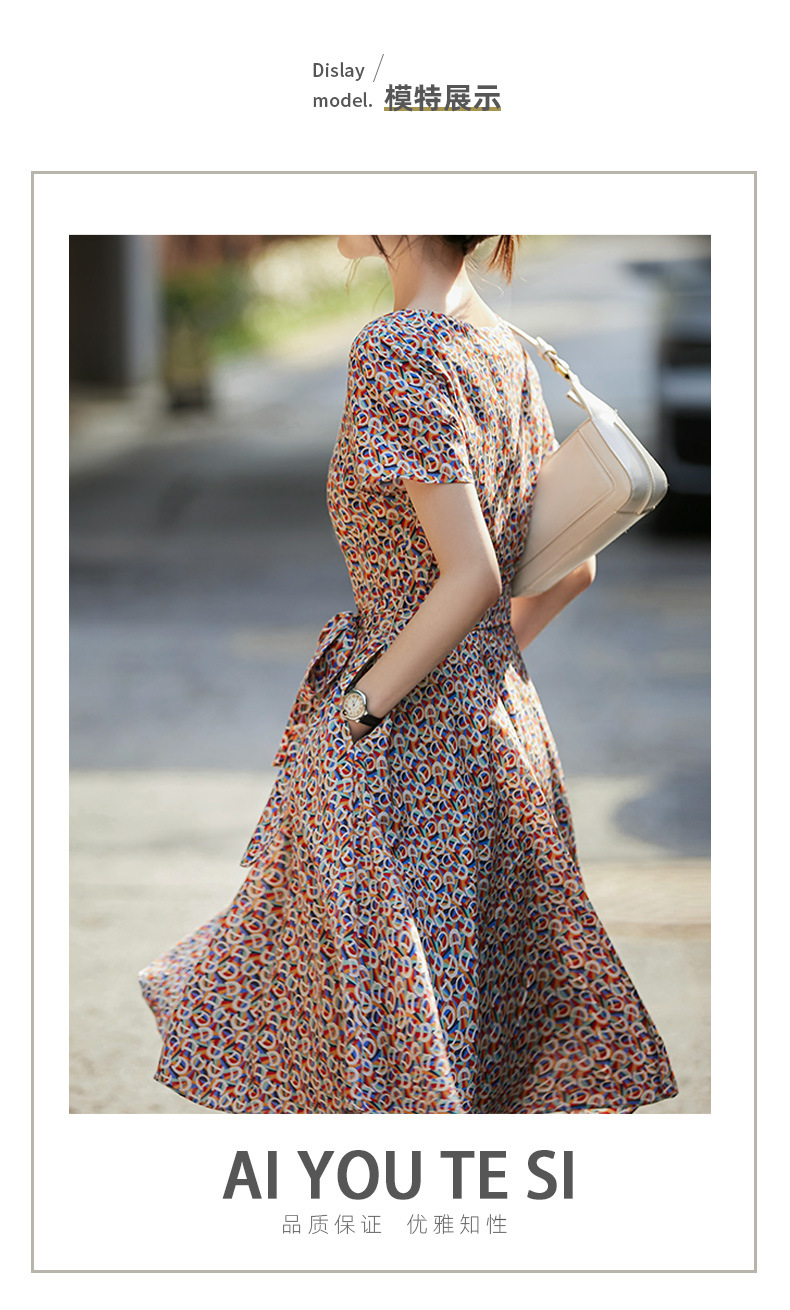 The gentle floral print dress exudes A sense of sophistication. The new 2024 summer women's dress with a tie and a mid-length A-line for summer