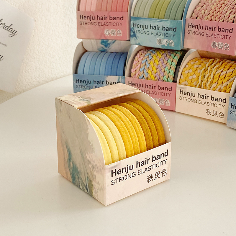 The gradient color ponytail tie leaves no trace and does not damage the hair. The high-elasticity rubber band is suitable for women to tie their hair without seams