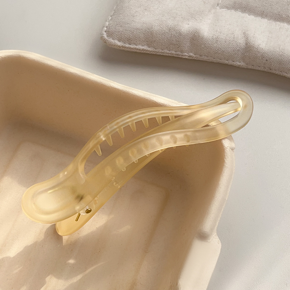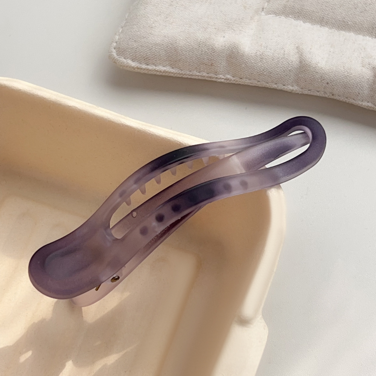 The gradient matte duckbill hairpin from Dongdaemun, South Korea, features a simple yet sophisticated hairpin top clip and a hair accessory for the back of the head