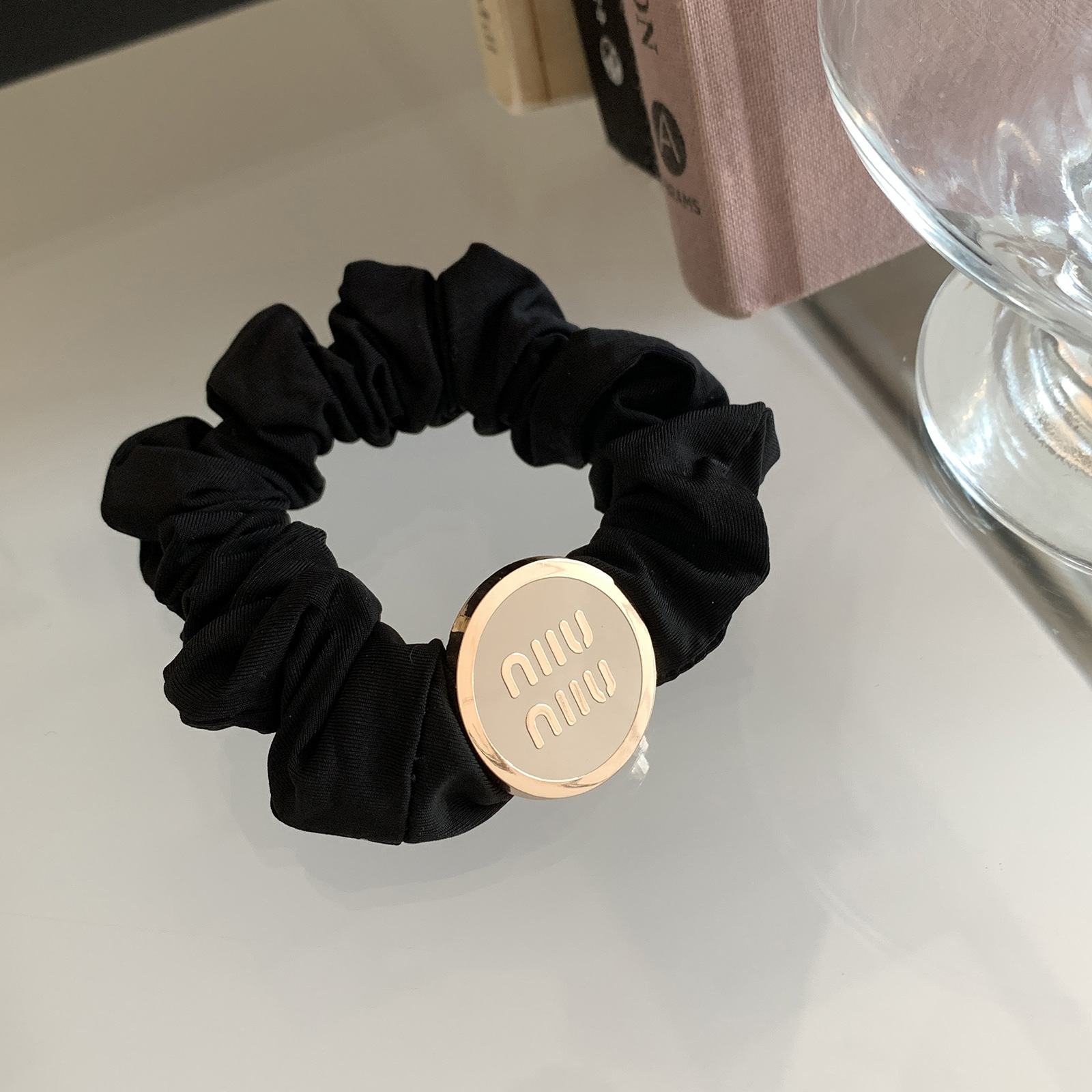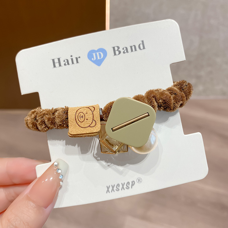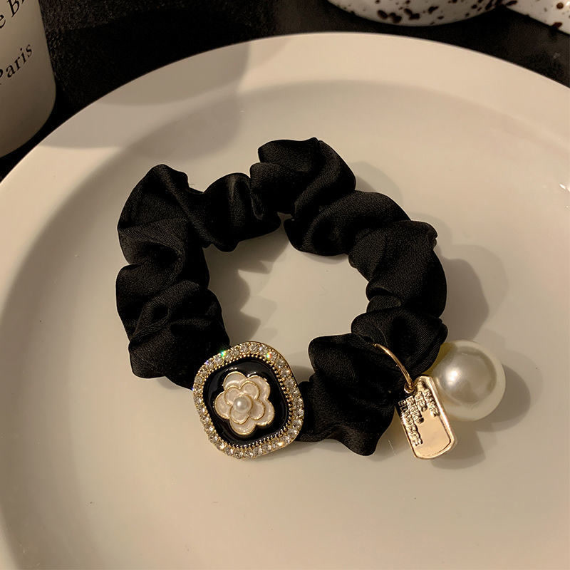 The hair band features a French retro satin large intestine ring, an adult style hair accessory, a simple and versatile hair tie, and a pearl bun hair tie