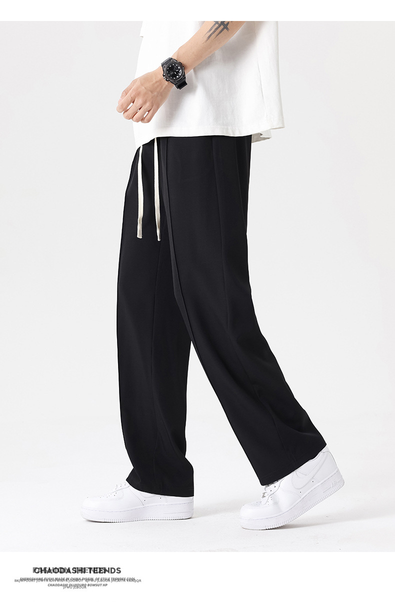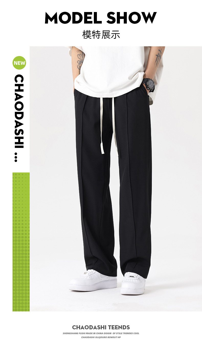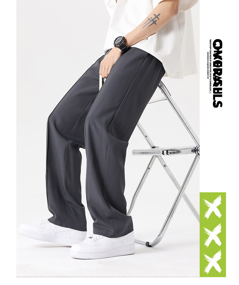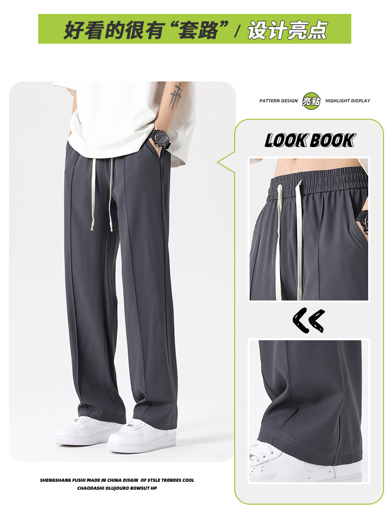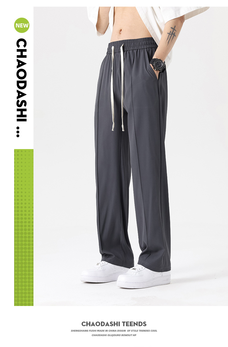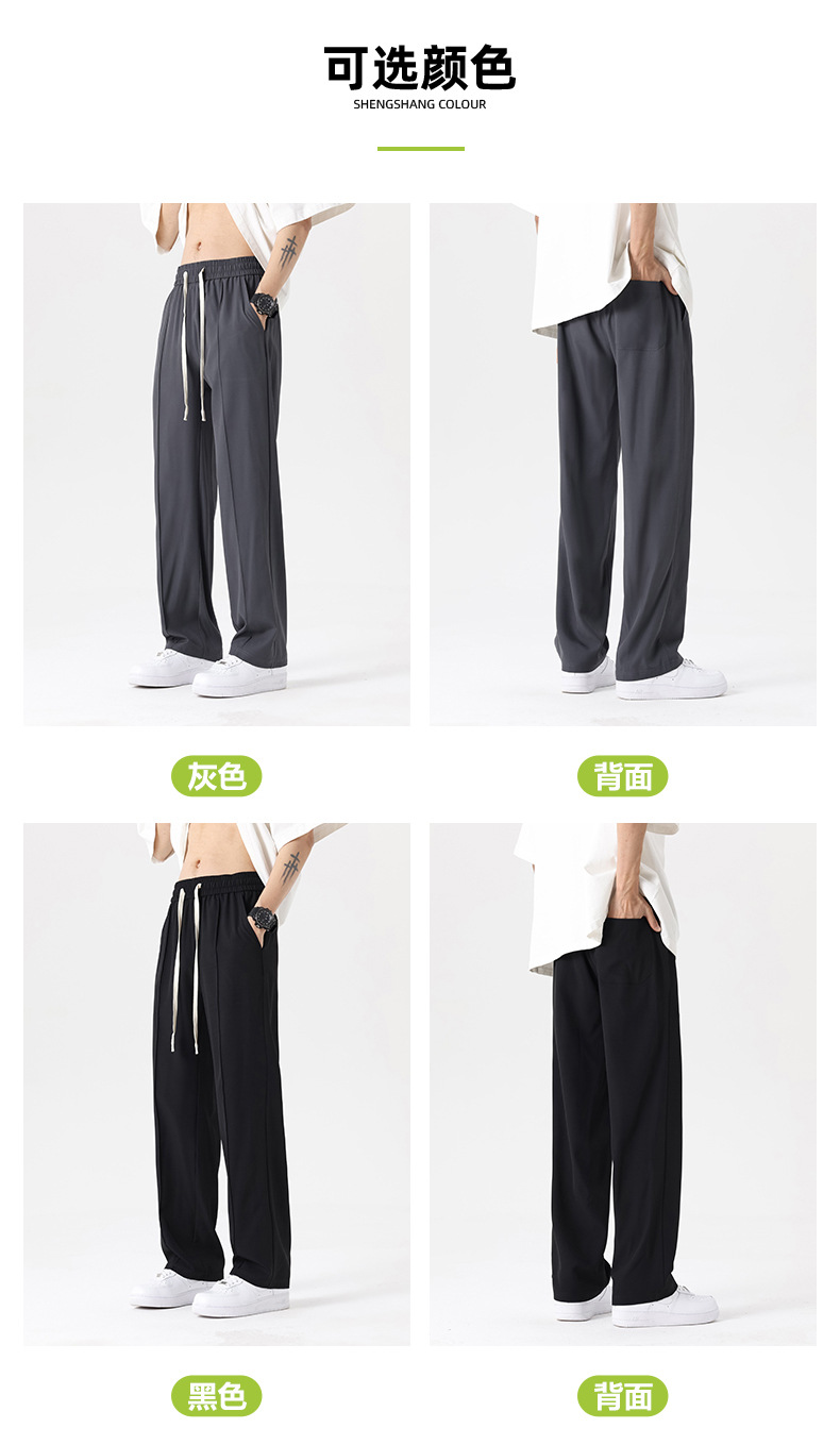 The ice silk trousers and mini dress pants have a good drape, loose waistband, and are of summer quality. They are straight-leg men's casual pants with a slightly bouncy drape