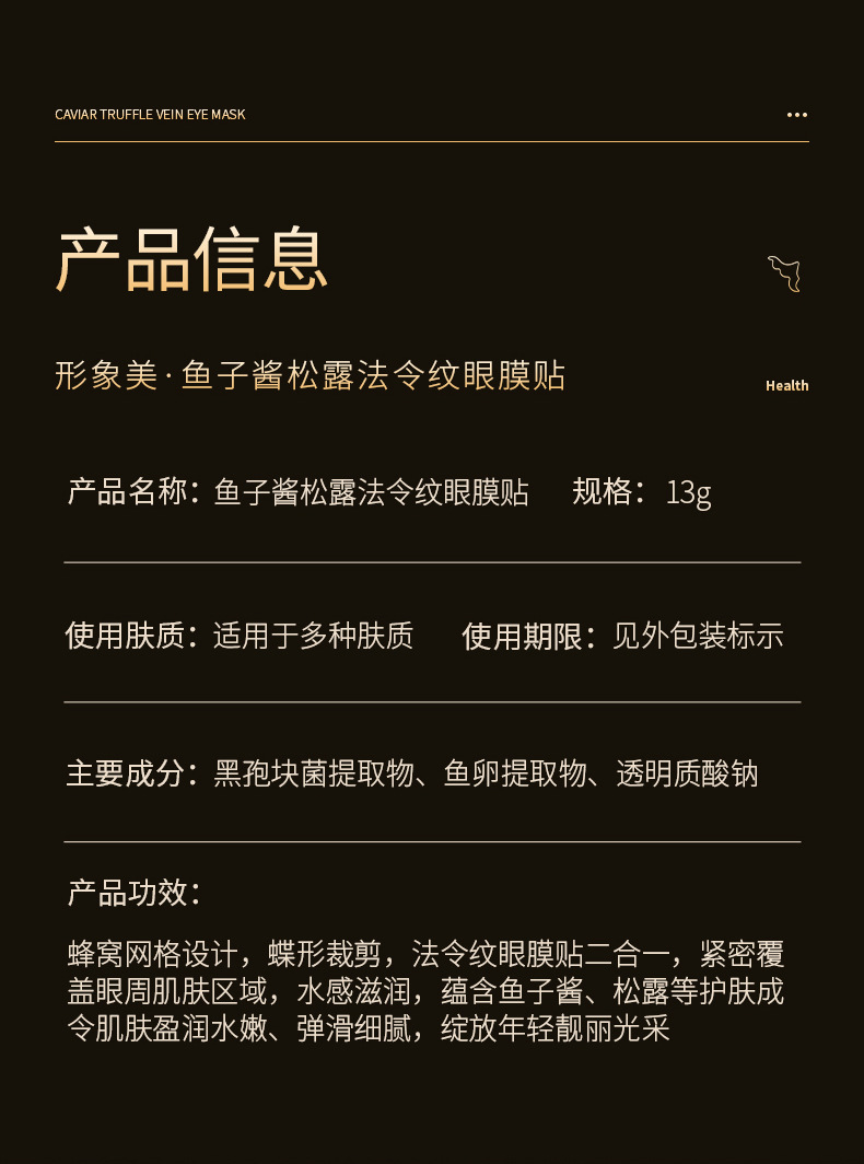 The "Image Beauty Caviar Truffle Eye Mask Forehead Patch" is specially designed for export