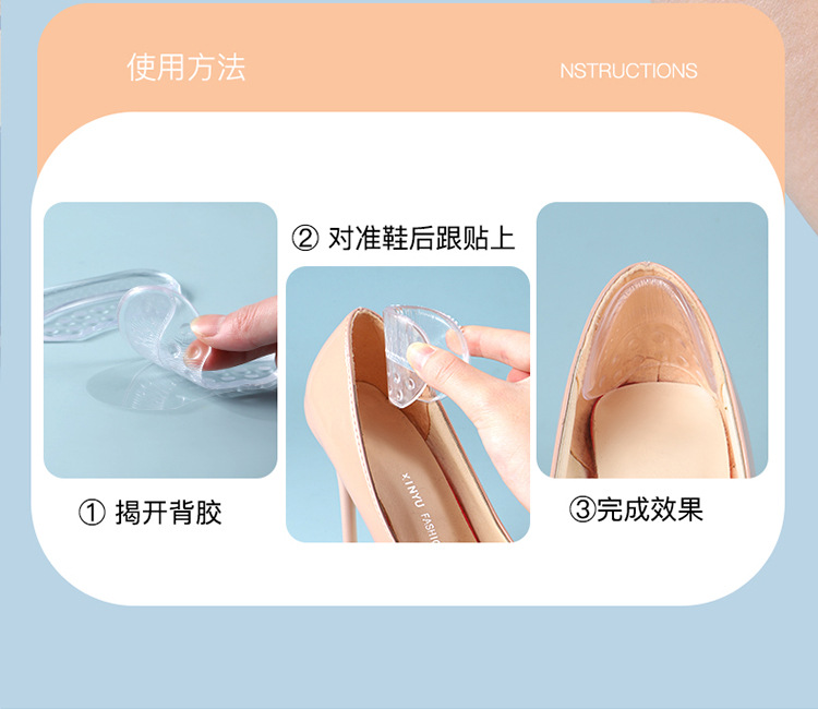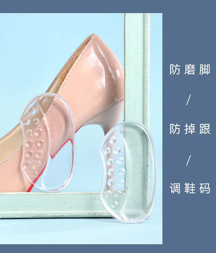 The invisible back sticker is comfortable, anti-chafing, and prevents the heel from falling off. It won't hurt the shoes. The half-size pad back sticker is self-adhesive without glue
