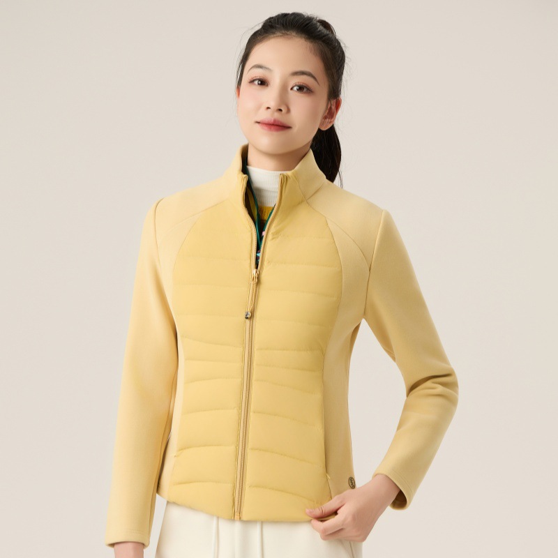 The jacket with a patchwork inner liner is a warm down jacket that cinds the waist and makes you look slimmer, providing warmth. The inner layer is fitted with a slim stand-up collar and is light, short and cute