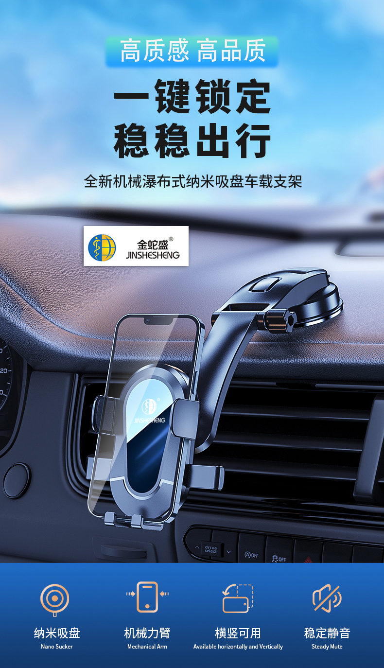 The Jinshesheng brand's all-new mechanical waterfall nano suction cup car stand for safety navigation is unstoppable