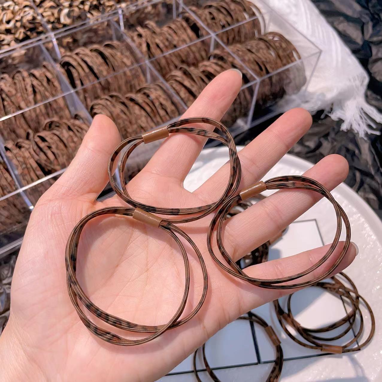 The Korean version of Dongdaemun's live-streaming collection features a fashionable, simple and versatile leopard print hair band, high ponytail and elegant leather band hair accessory