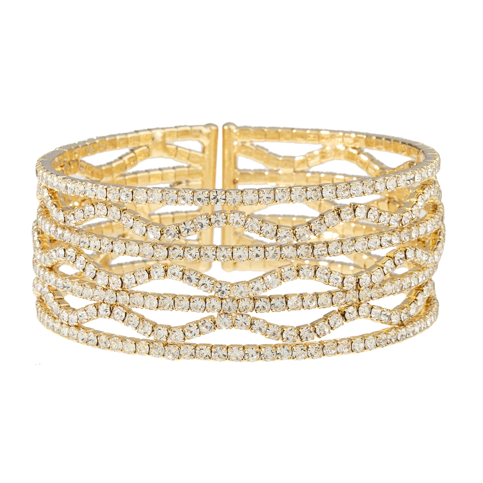 The manufacturer's new cross-border personalized and fashionable seven-row wavy rhinestone open bracelet with steel wire elastic design and diamond-encrusted shiny jewelry