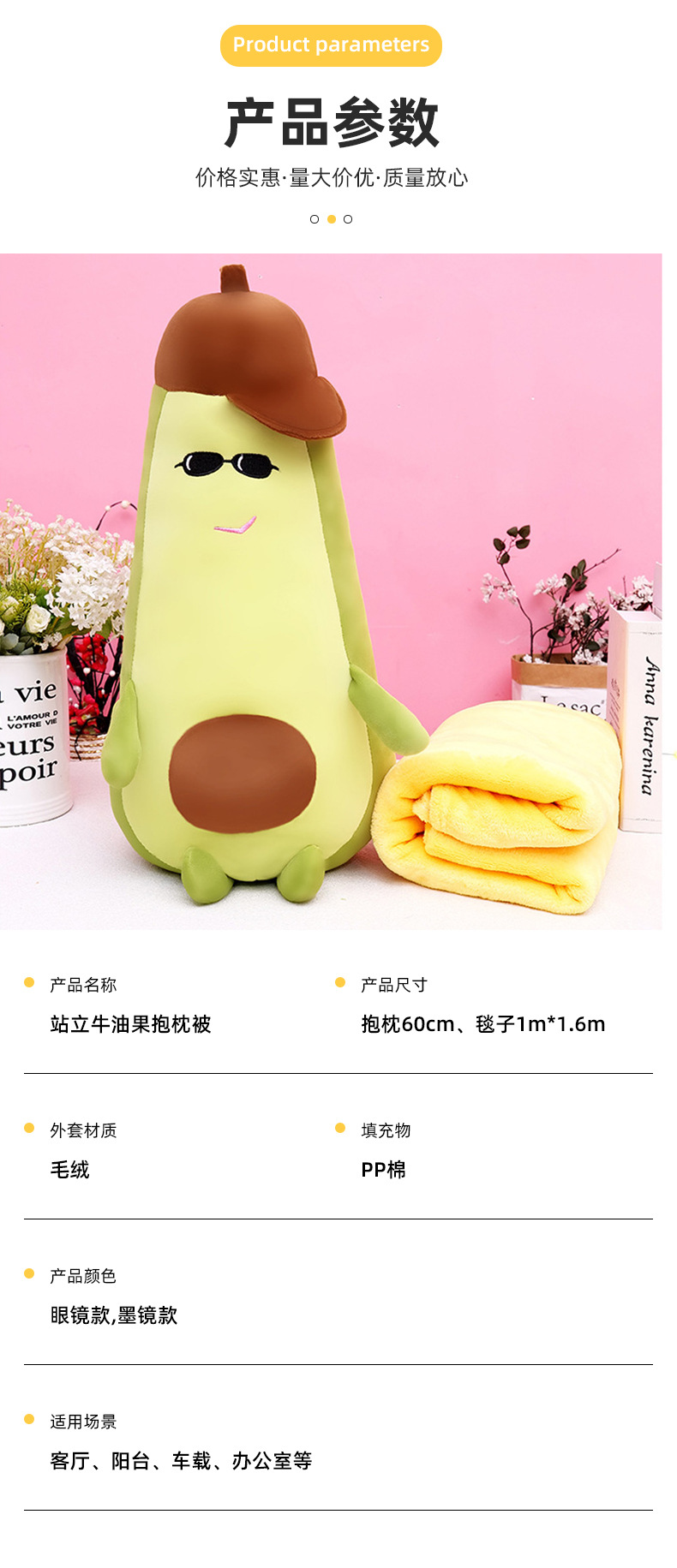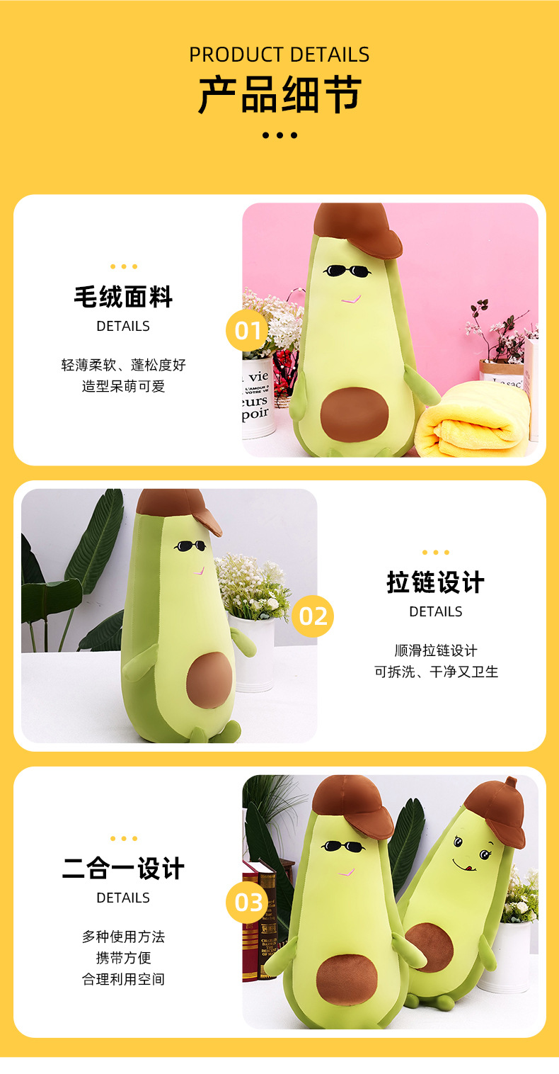 The manufacturer supplies multi-functional avocado-shaped air conditioner blankets, children's plush toys, car home sofas and throw pillows