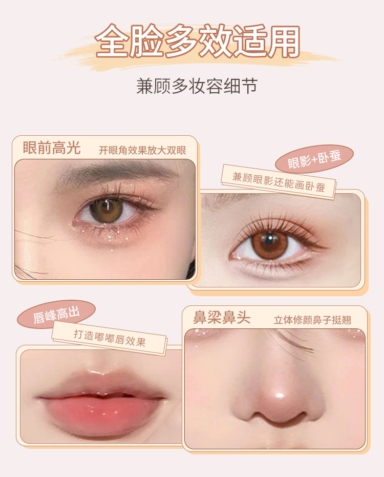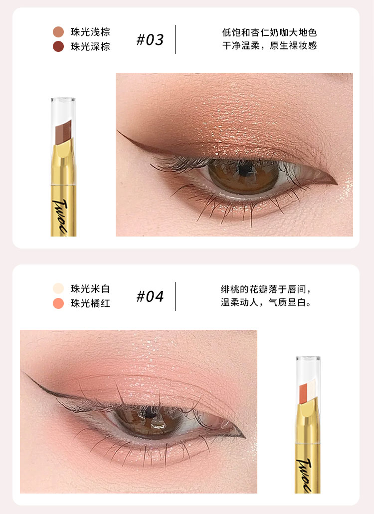 The Meixi 'er Little Gold Bar Two-color eyeshadow stick and eyeshadow pen do not cause makeup to come off easily, making the makeup bright and shiny. Gradient eyeshadow, pearlescent, earth tones