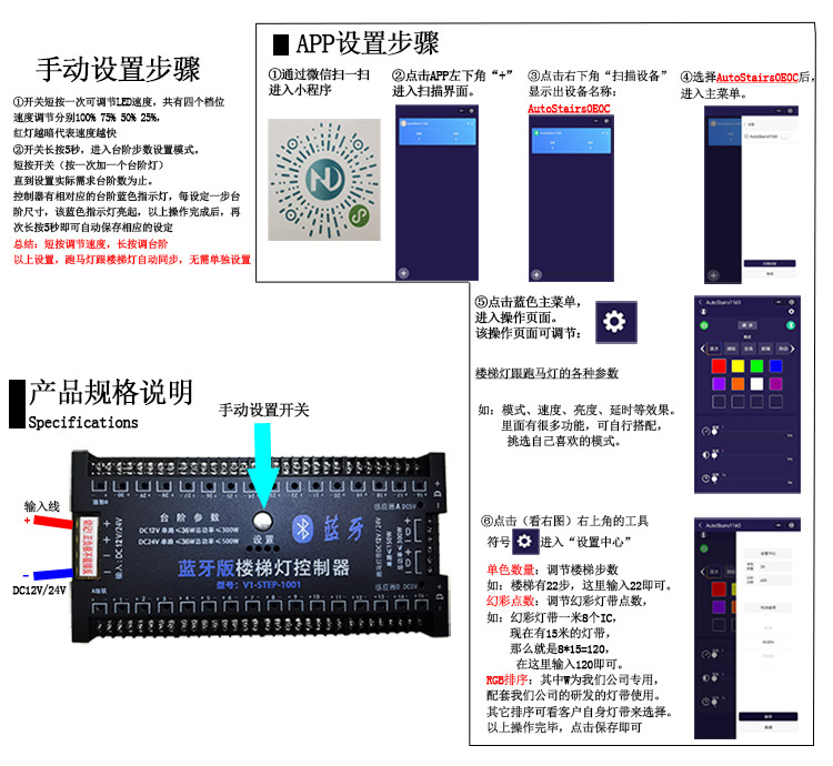 The mobile Bluetooth mini-program for the popular staircase sensor step water flow light can be adjusted in 6 modes for automatic and intelligent control