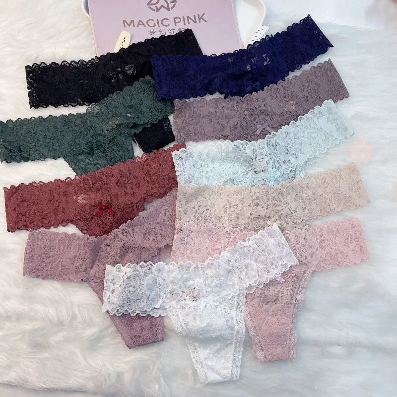 The Mystery of the Magic Box: European, American and Japanese style sexy low-waisted lace T-pants, solid-color cut-out cotton crotch girls' thong pants