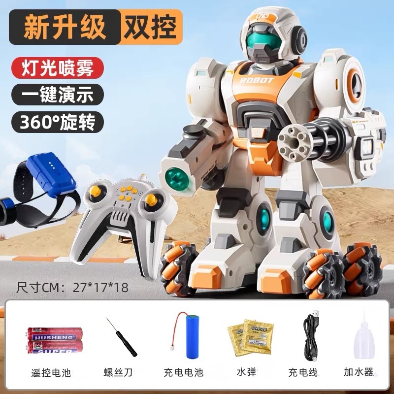The new 2.4G remote-controlled robot sound and light spray can be used for two-player battles to launch water bombs, making it a cross-border electric game model