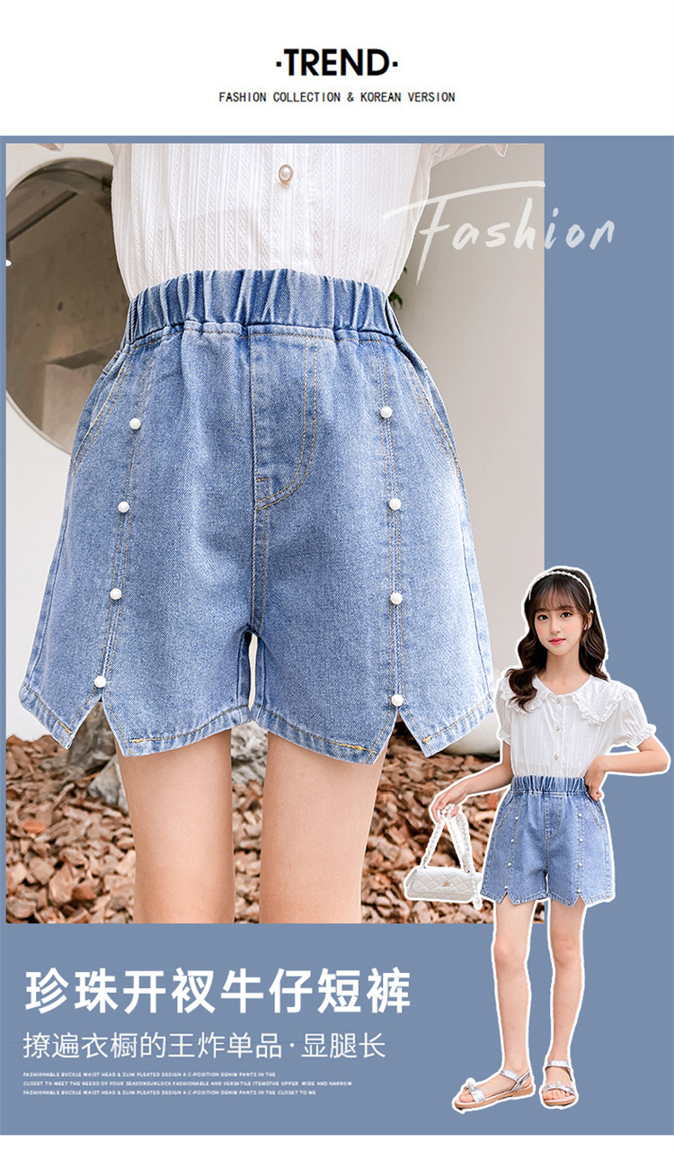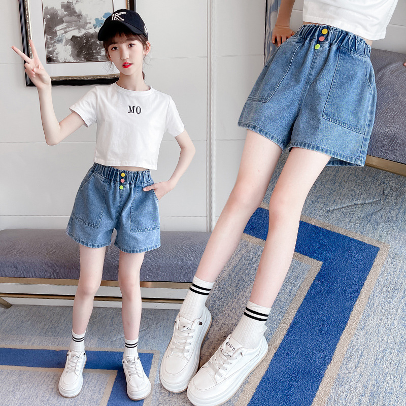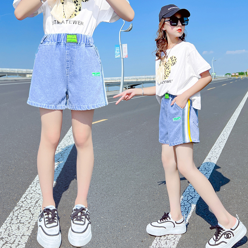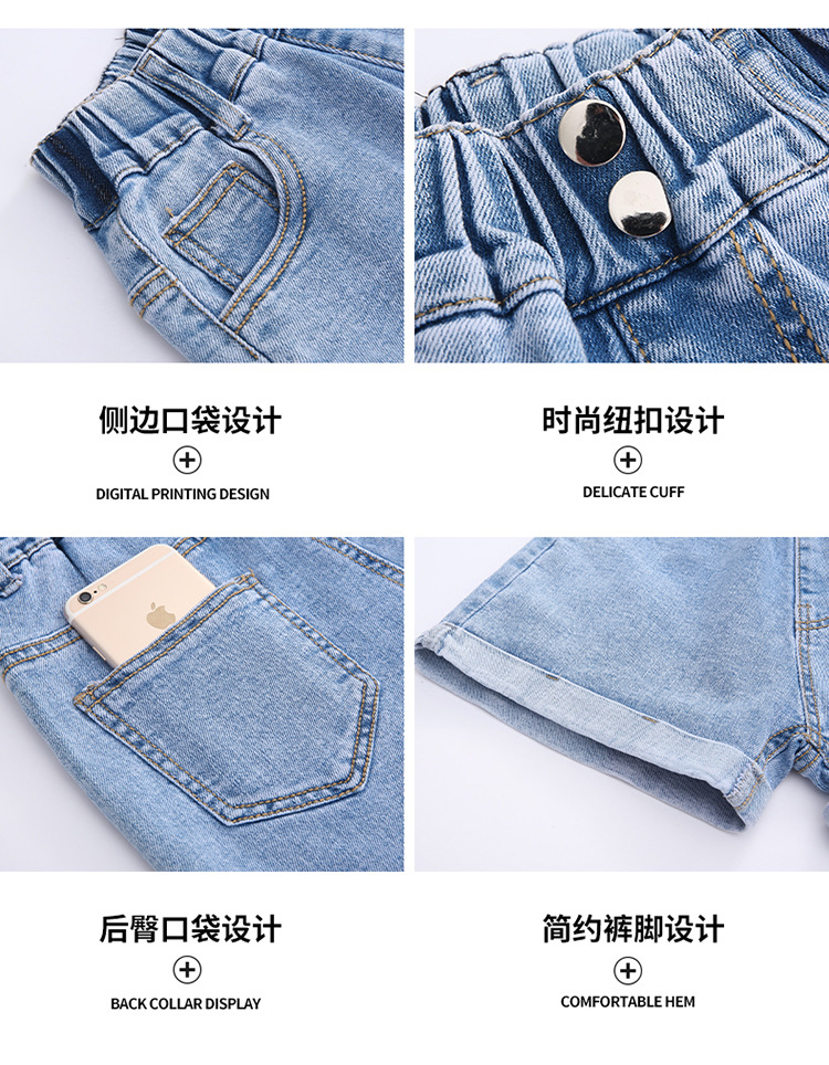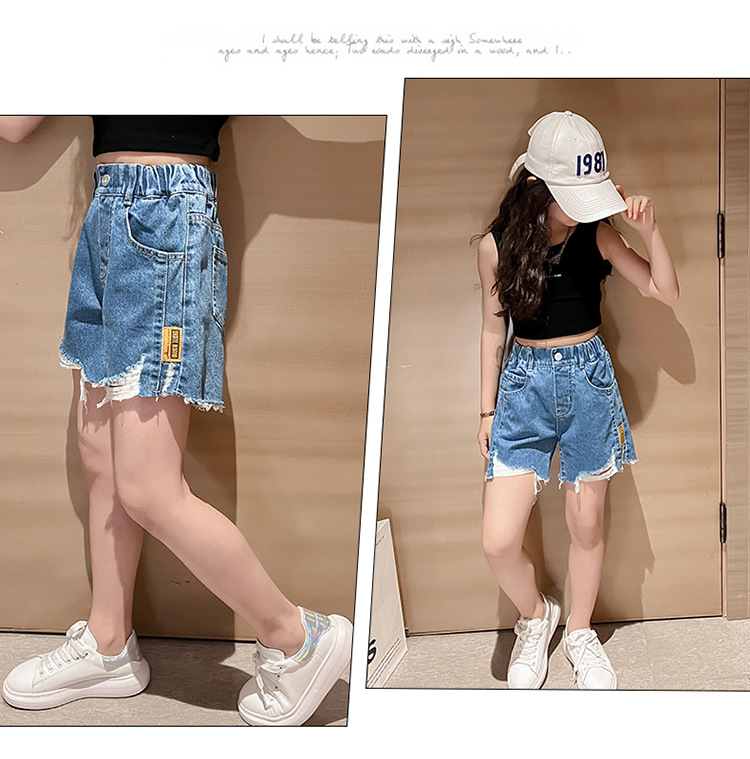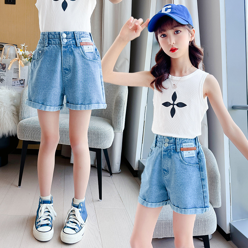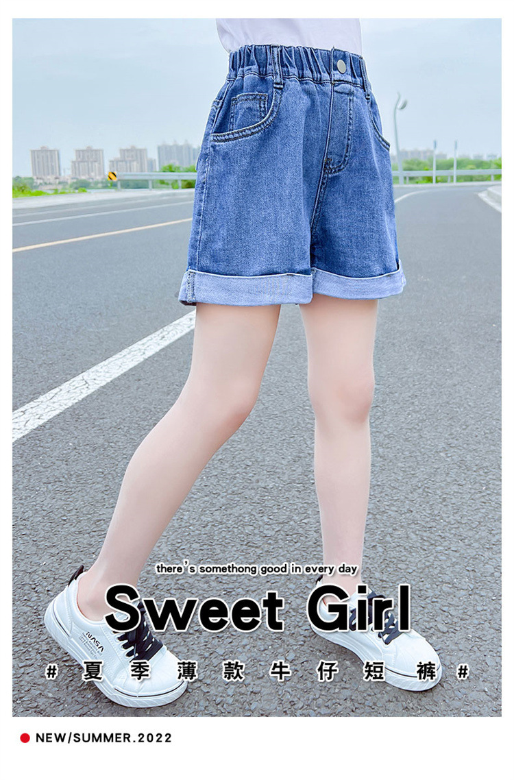 The new 2022 summer collection of girls' denim shorts. The cool summer student casual Korean version for little girls
