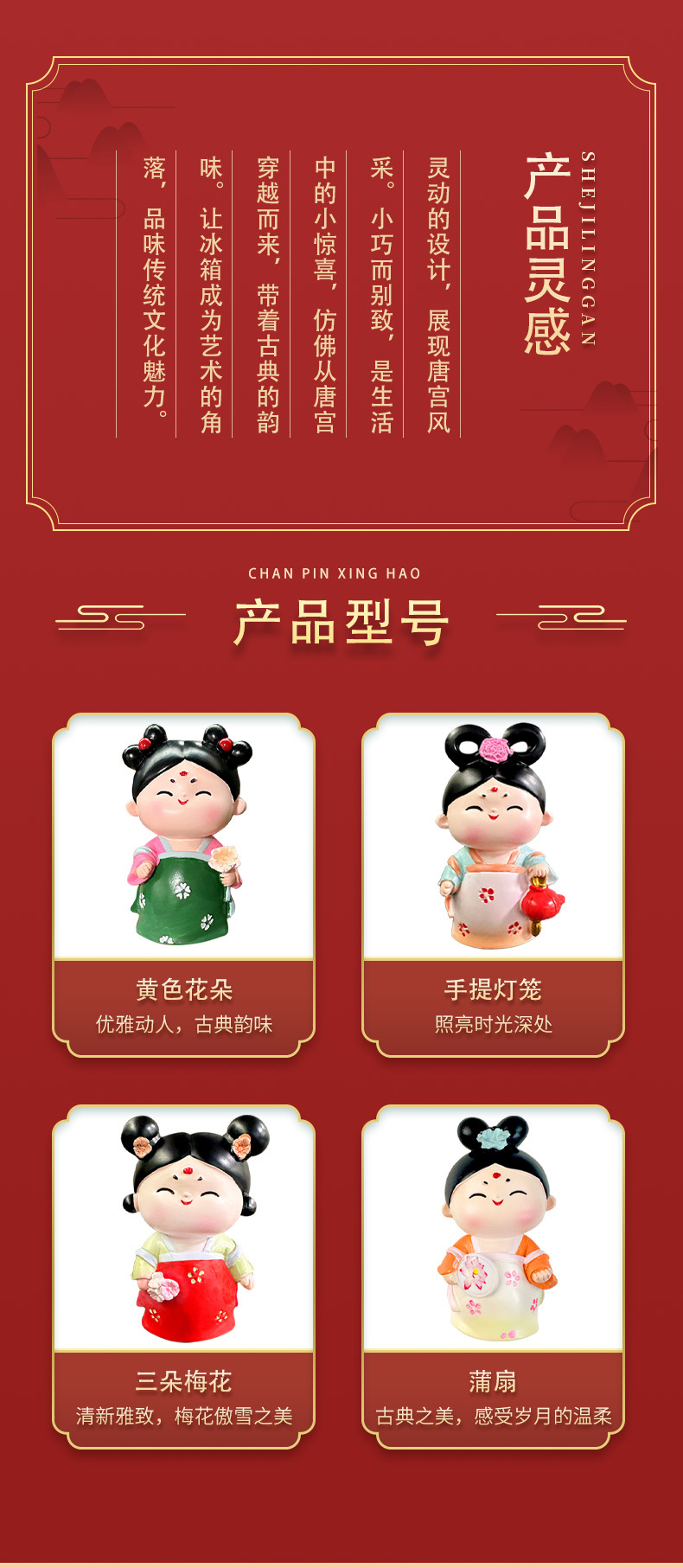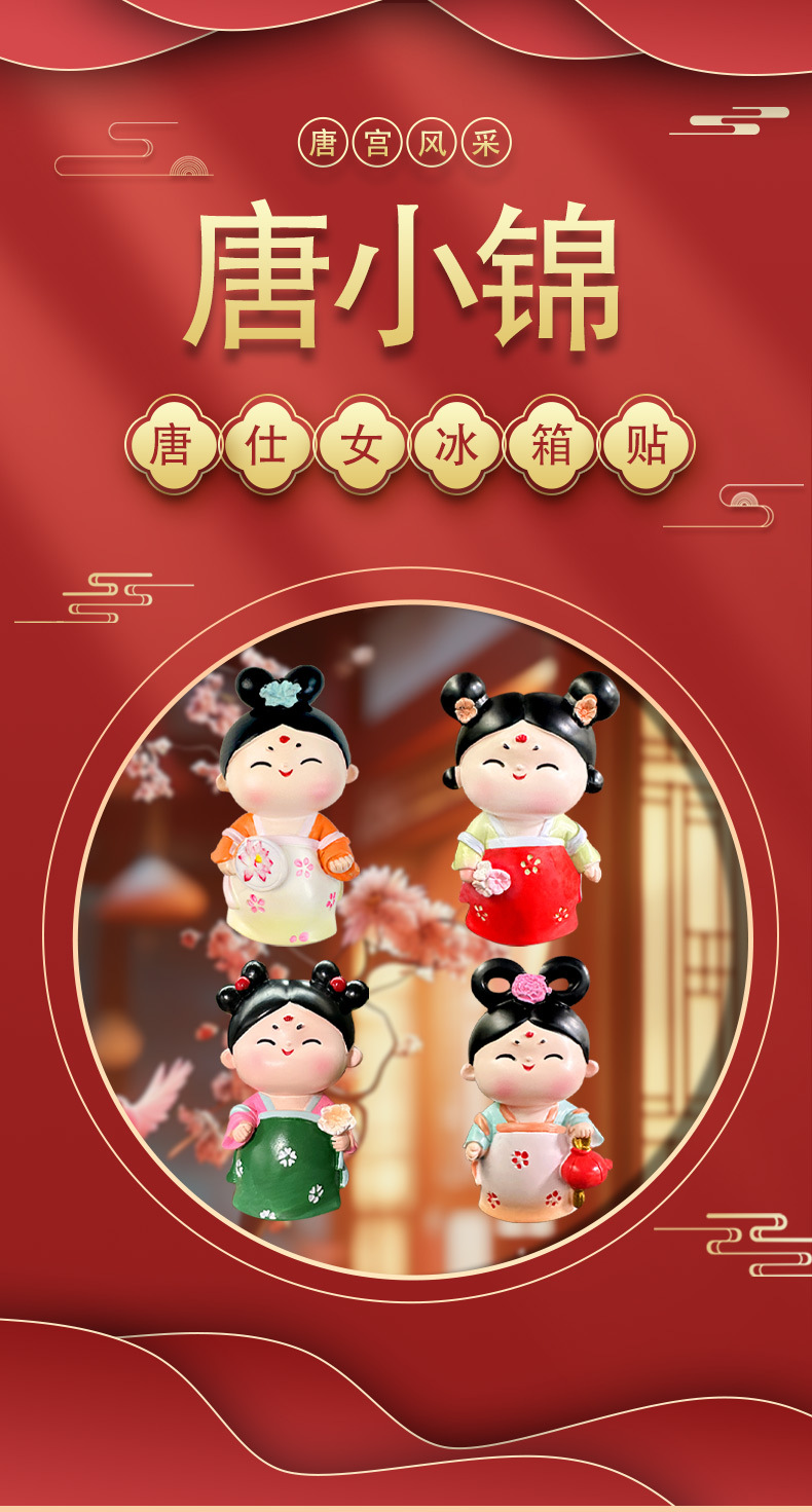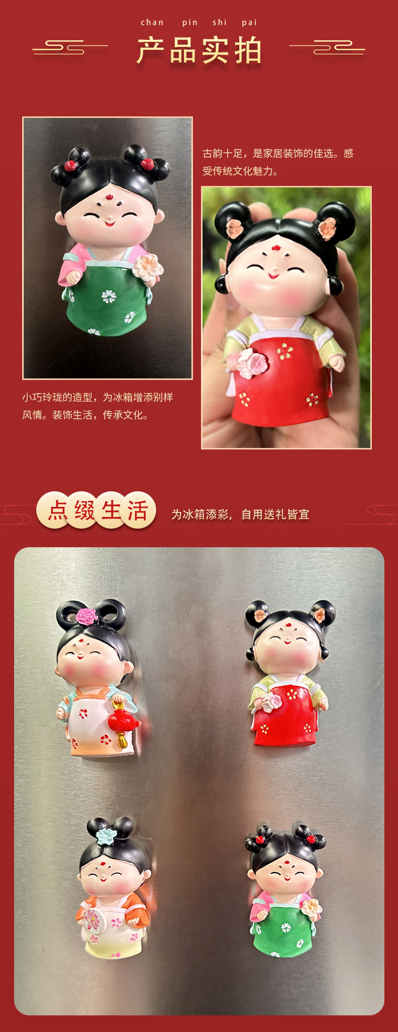 The new 2024 National trend refrigerator magnet magnetic decoration ancient-style doll refrigerator magnet, a travel souvenir of Tang Dynasty ladies in Xi 'an