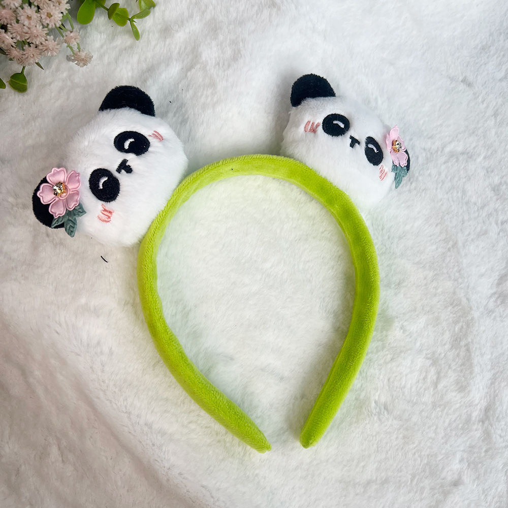 Green hairband, blush embroidery, panda, pink diamond and small flowers