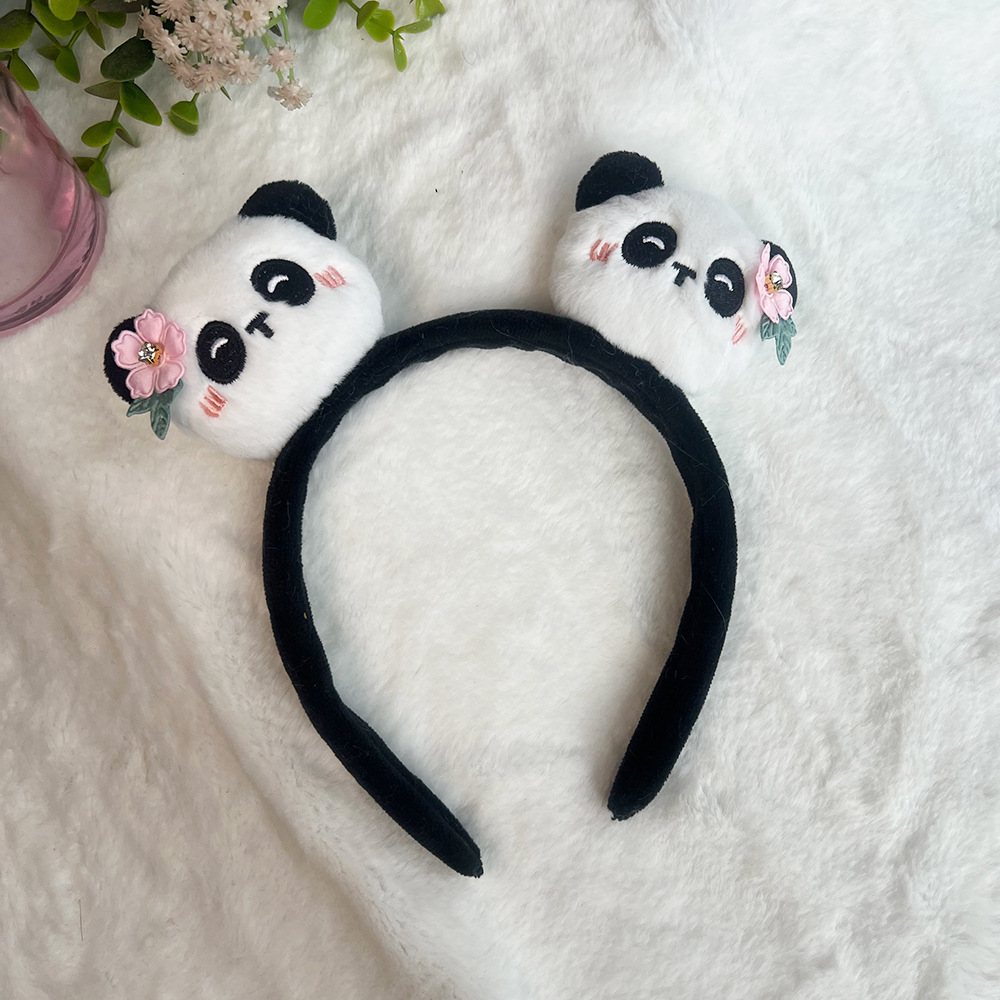 Pink hairband, blush, embroidered panda, pink diamond, little flower