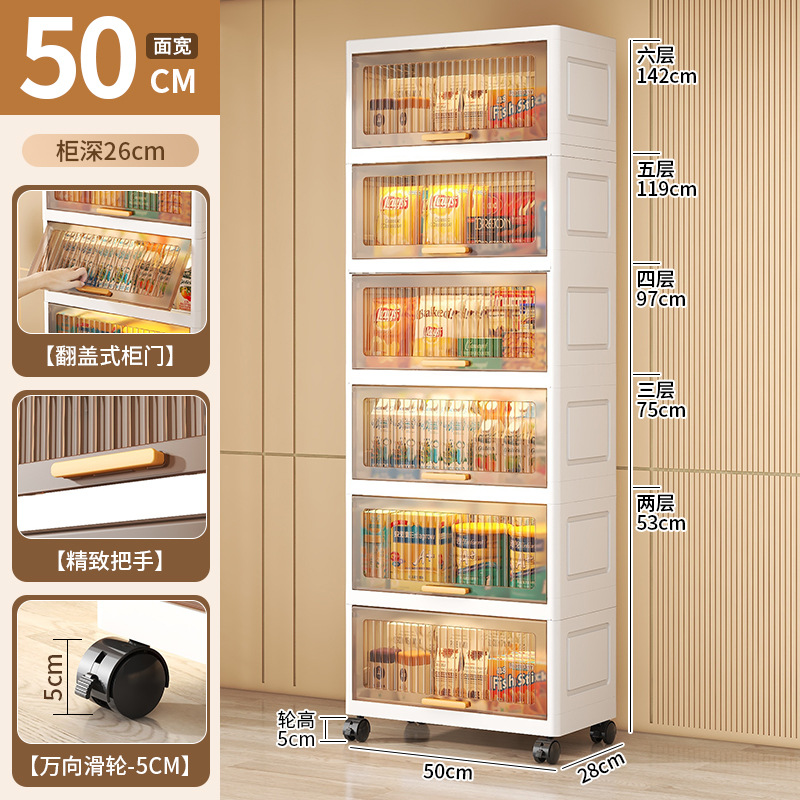 The new 25-year-old household storage cabinet with transparent and visible bottom wheels and thickened PP flip-top storage cabinet