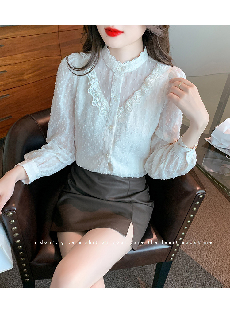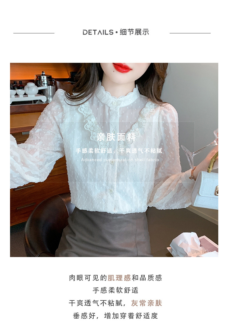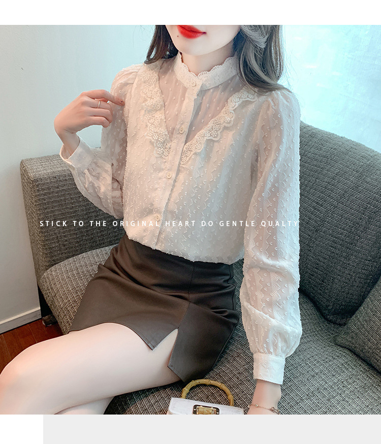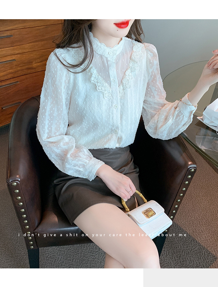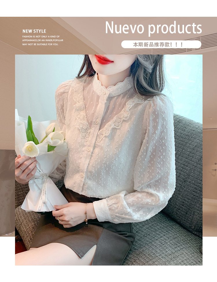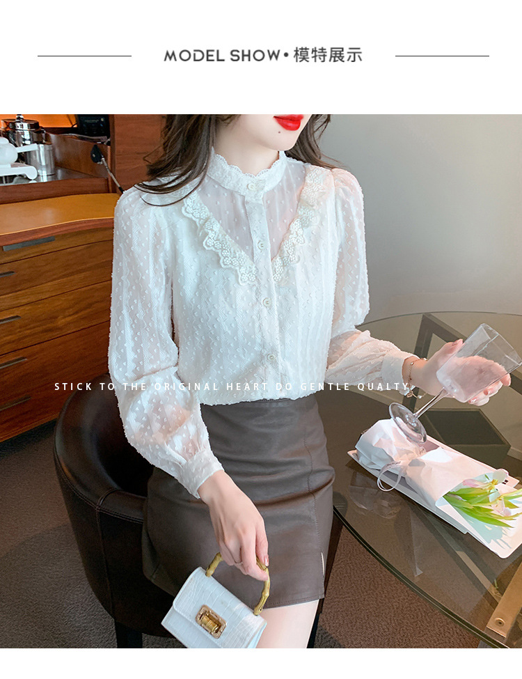 The new autumn 2023 women's fashionable and stylish mini blouse with lace lace puffed sleeves and chiffon shirt is versatile