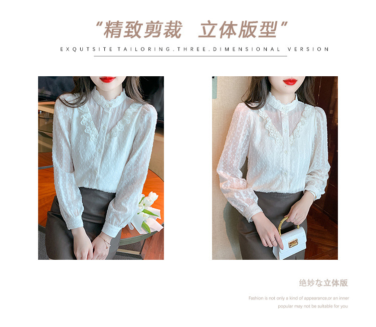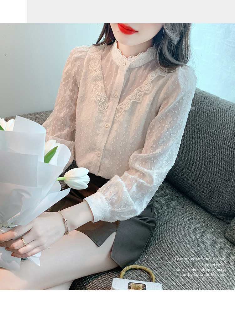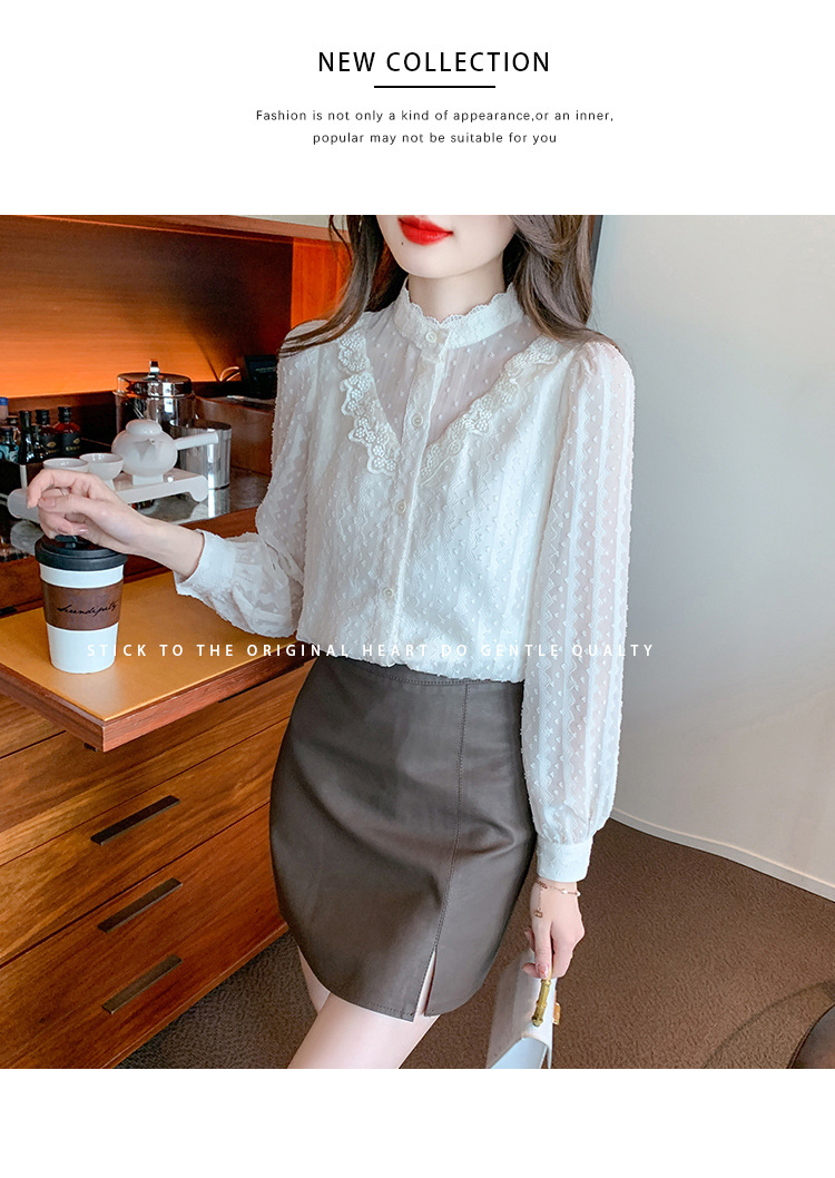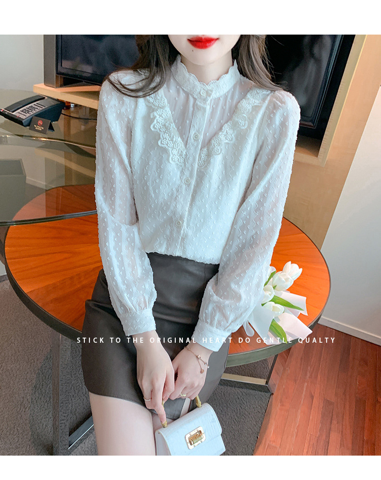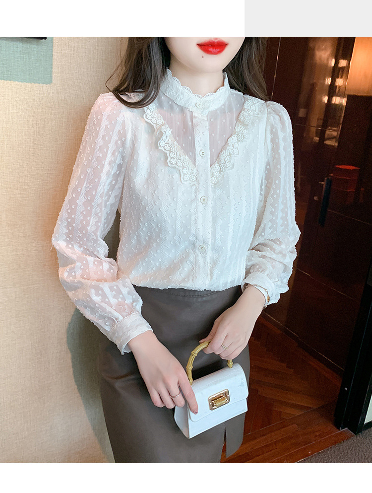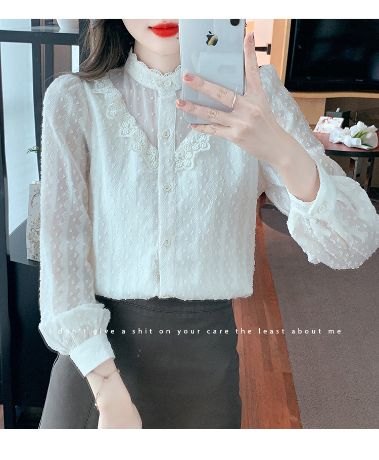 The new autumn 2023 women's fashionable and stylish mini blouse with lace lace puffed sleeves and chiffon shirt is versatile