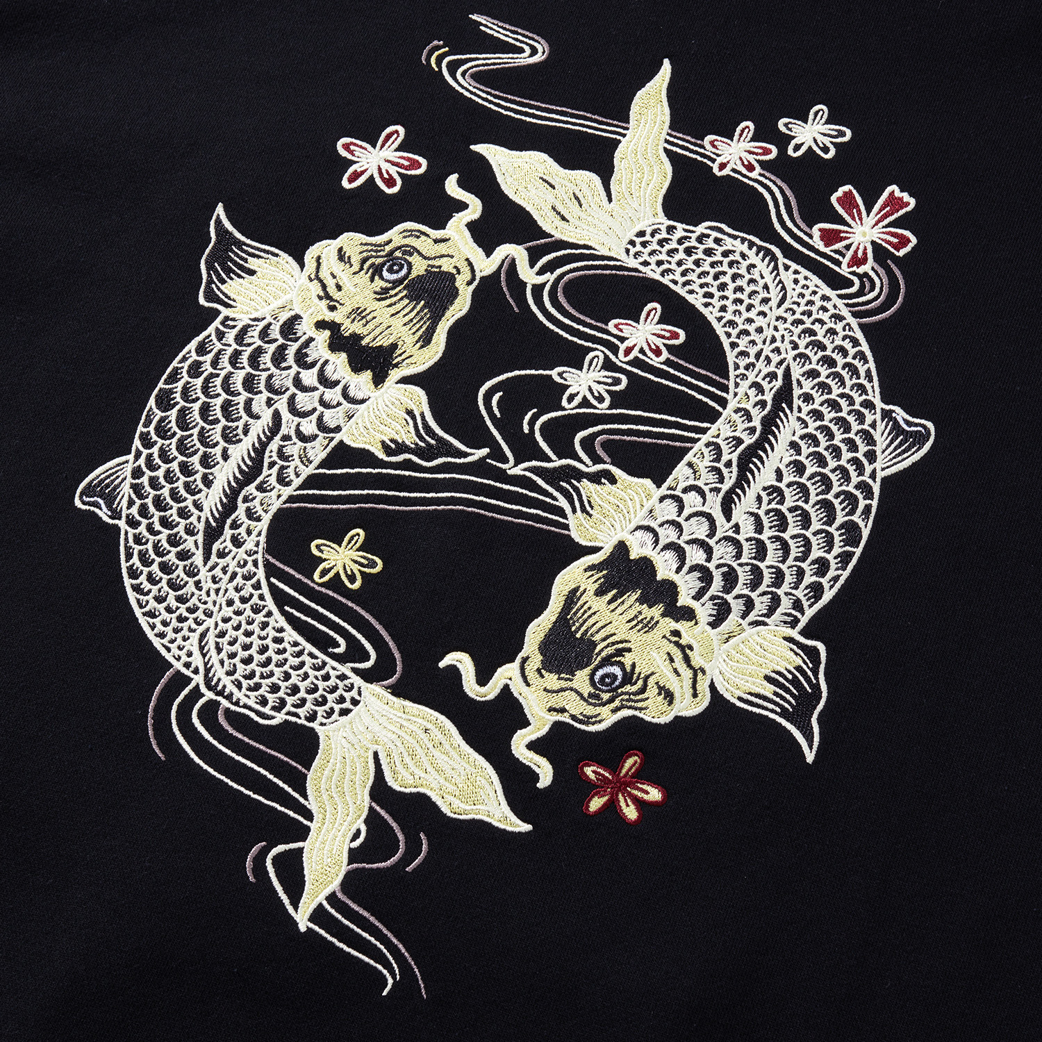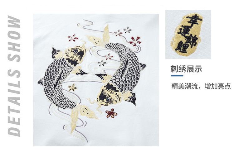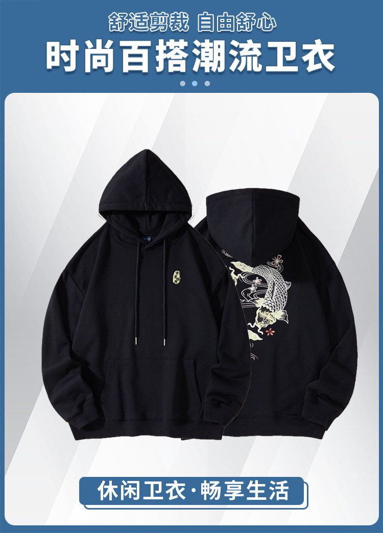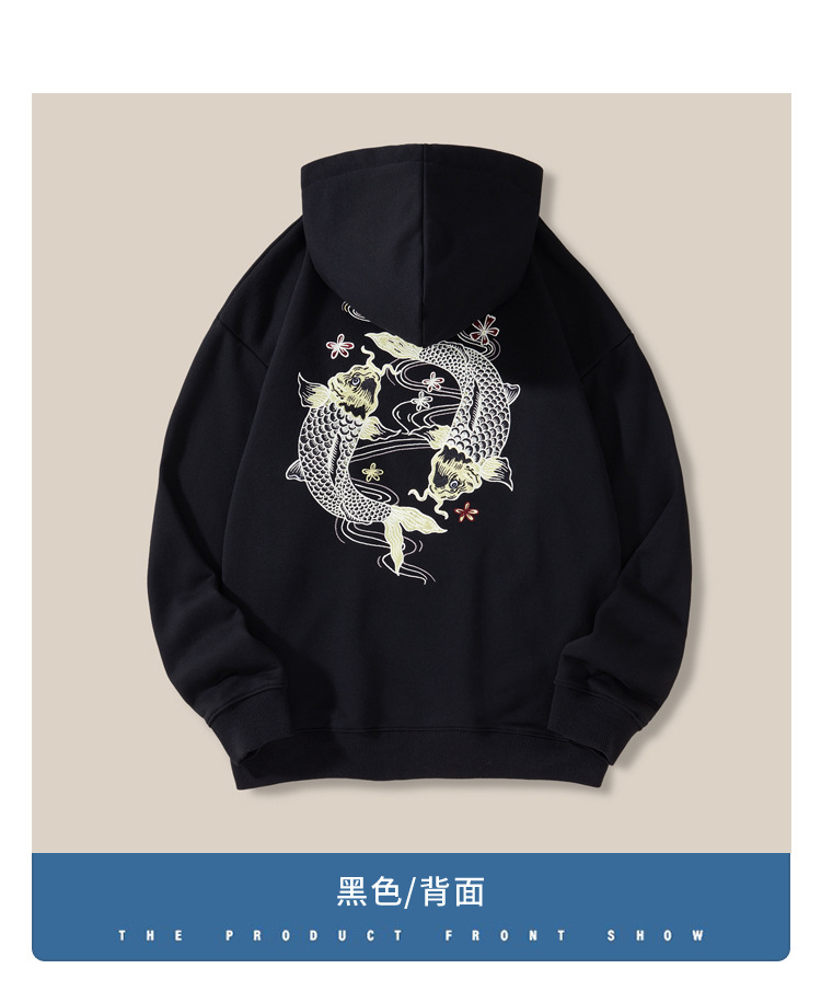 The new autumn and winter collection of koi fish embroidered hoodies, men's hooded shirts, large-sized men's pullovers and casual couple shirts from a trendy brand