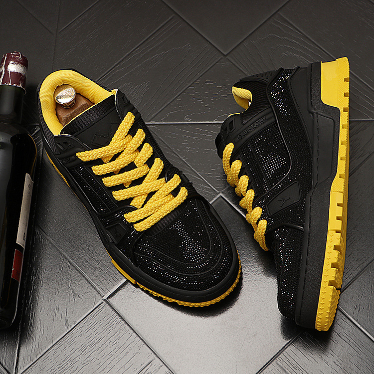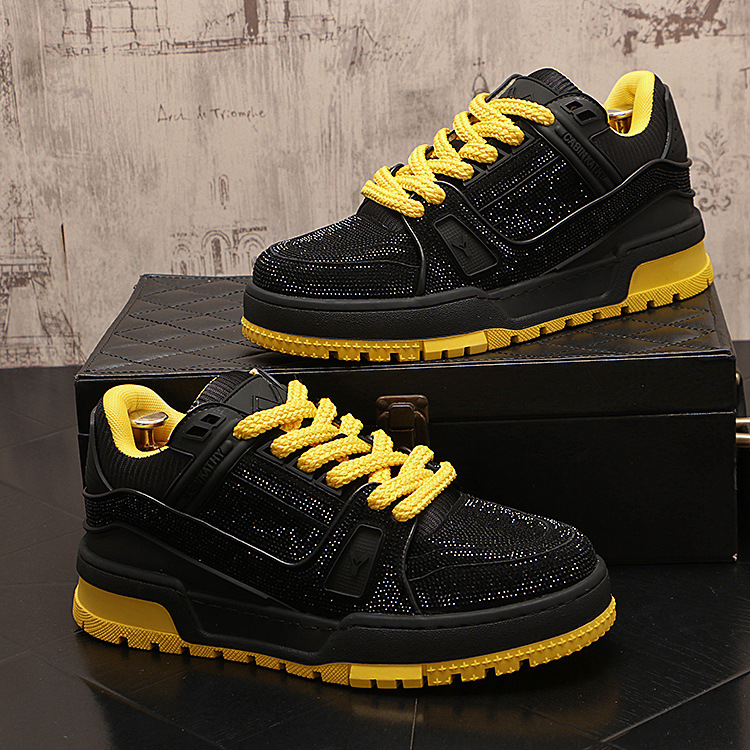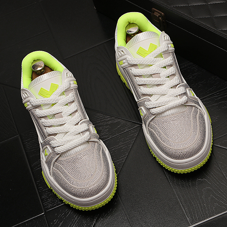 The new autumn collection of fashionable sneakers features low-top rhinestone casual shoes, trendy and light luxury men's height-increasing shoes, and a silver single shoe from a trendy brand