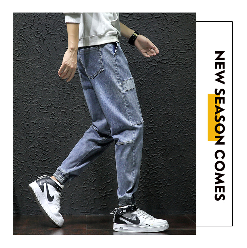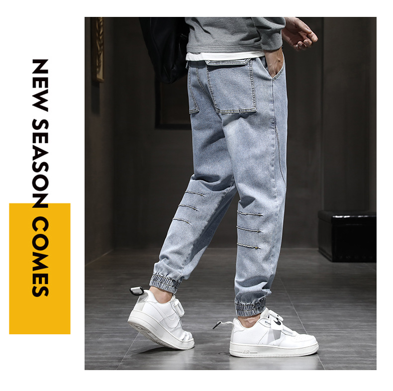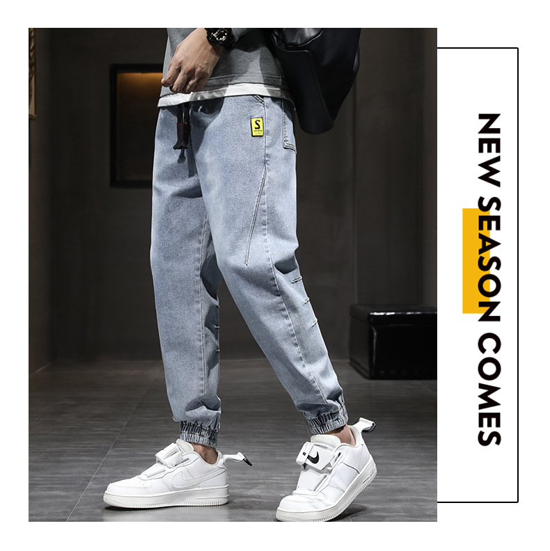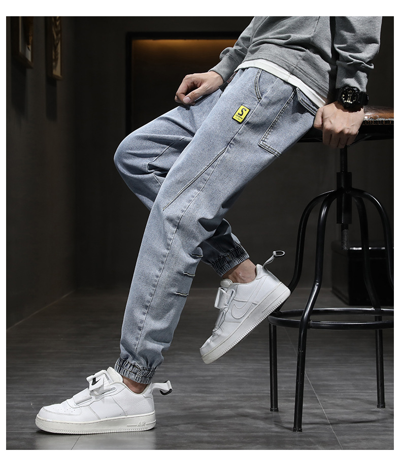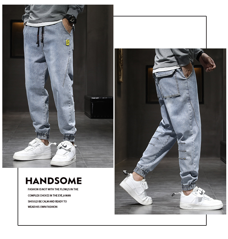 The new autumn stretch jeans for men, stylish and casual trousers, and the trendy brand Weiha loose nine-inch tapered men's pants